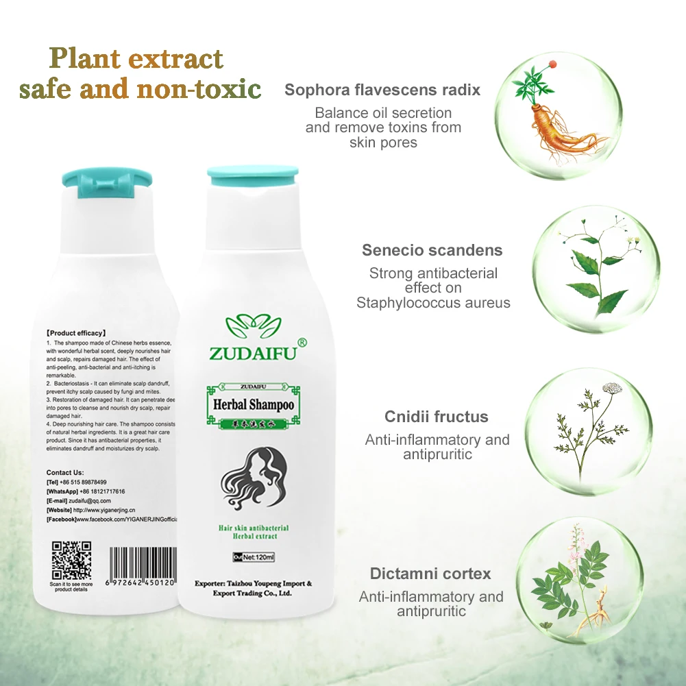 2. Антибактериальный травяной шампунь может устранять перхоти на коже головы, подавлять и уничтожать зуд кожи головы, вызванный грибками и клещами.