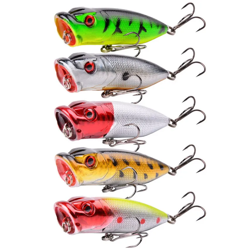 5 шт.лот, рыболовные приманки Topwater, 7,2 см12 г, Поппер, приманка, 5 цветов, жесткая приманка, Искусственные воблеры, пластиковые рыболовные снасти, товары