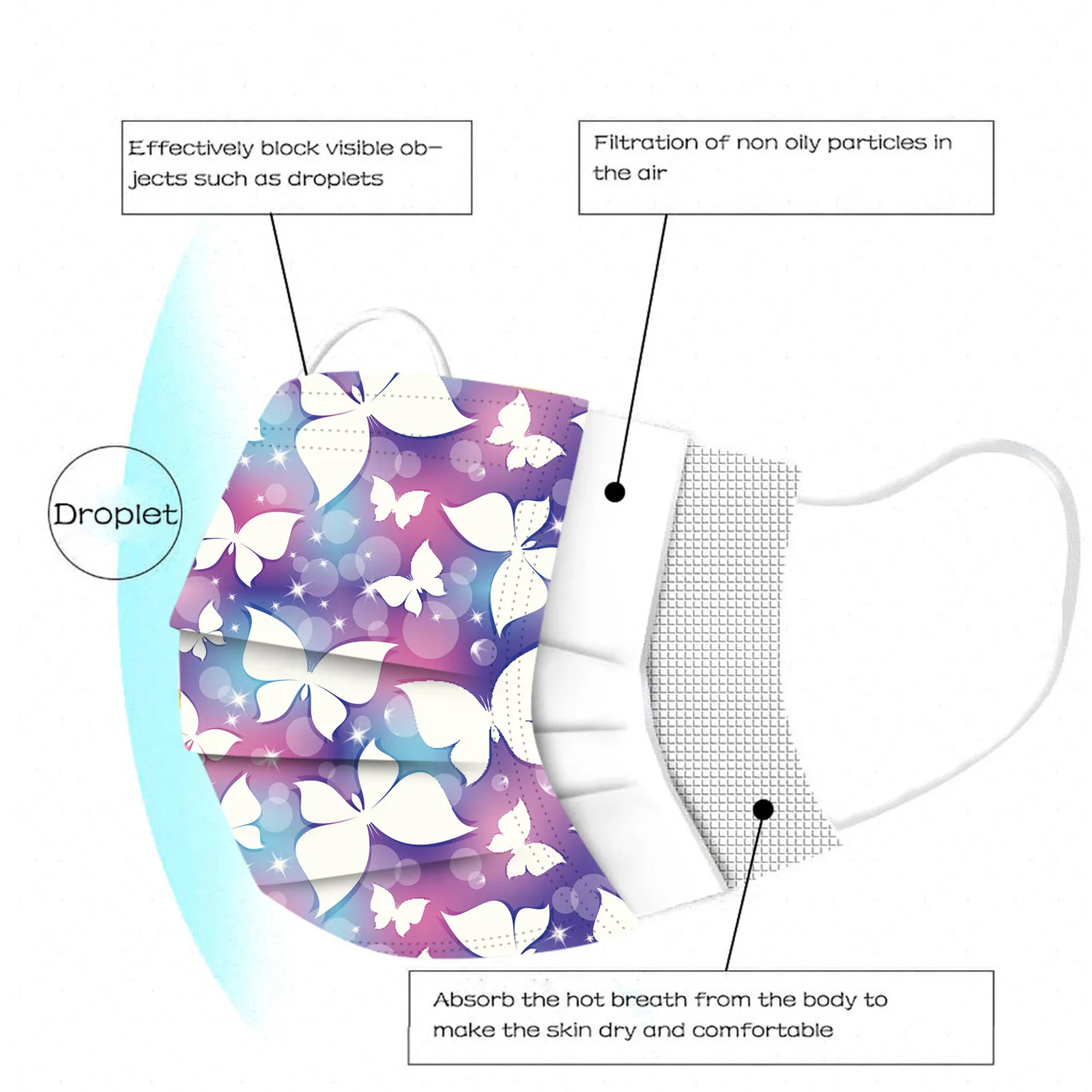 10 шт бабочка, с принтом в виде маски дизайнерские одноразовая маска для ухода за кожей лица Mascherine Mascarillas Infantiles Desechables Mondmaskers