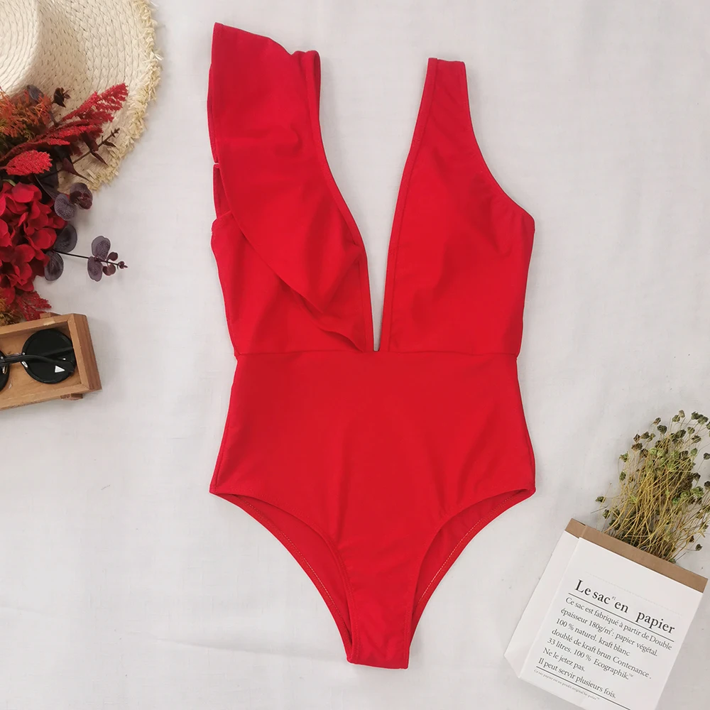 Слитный женский купальник с оборками, 2021 сексуальный глубокий V-образный вырез, цветочный принт, бикини, купальник, лето, открытая спина, пуш-ап, пляжная одежда, монокини