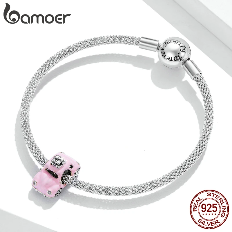 Bamoer подлинный 925 серебряный розовый автомобиль модный шарм для оригинального браслета для женщин Изготовление ювелирных изделий DIY браслет аксессуар SCC1738