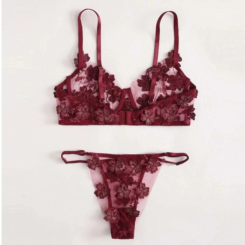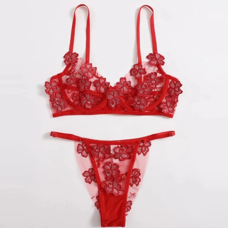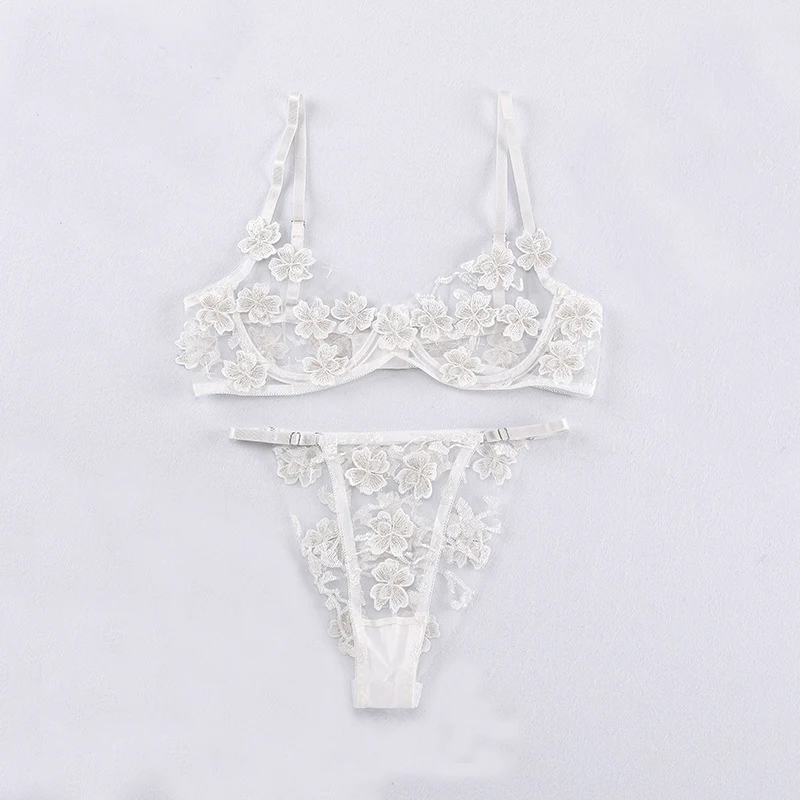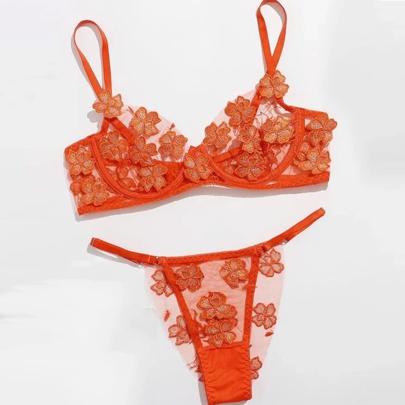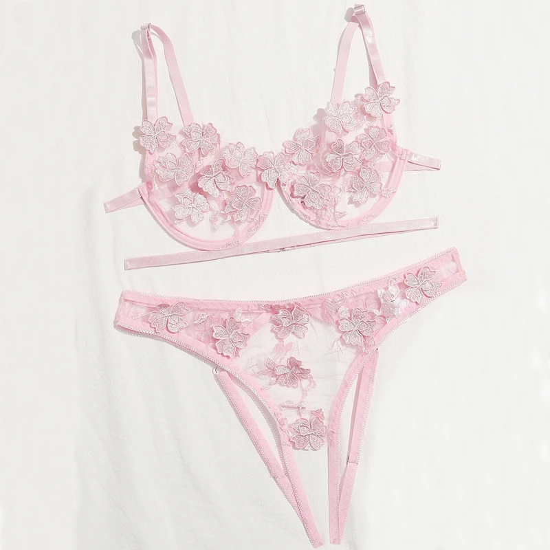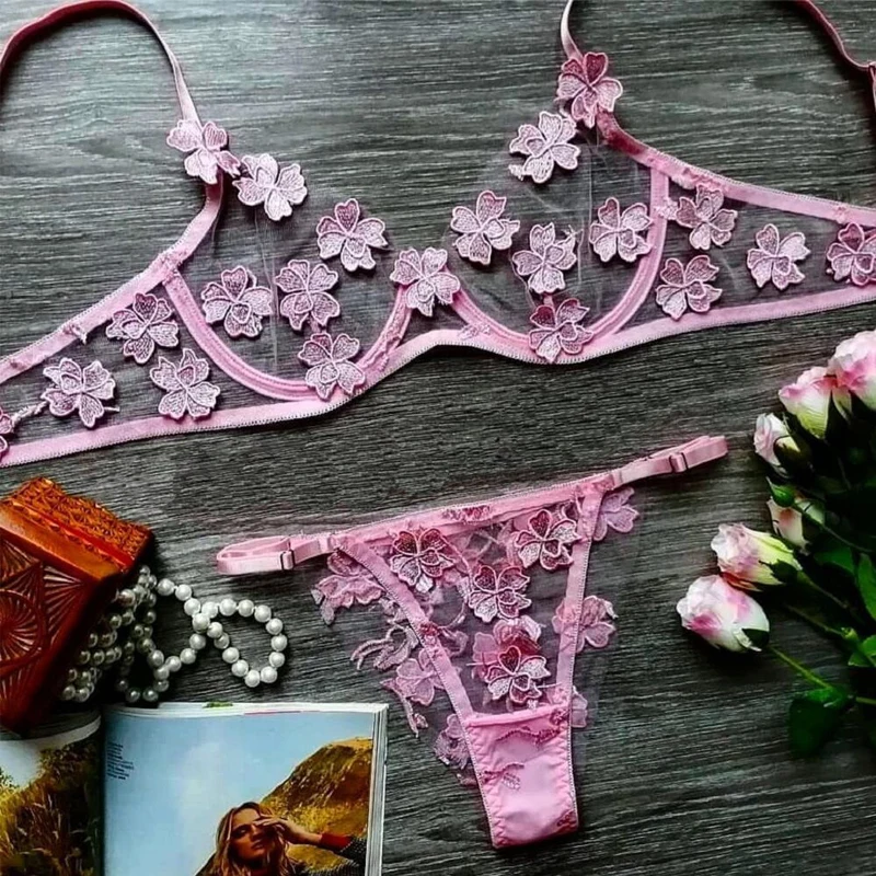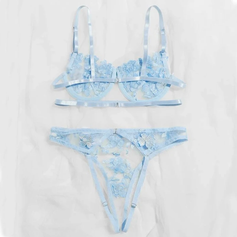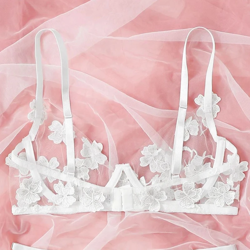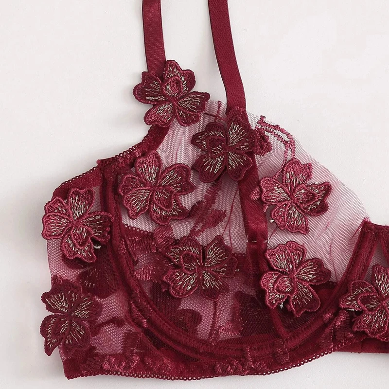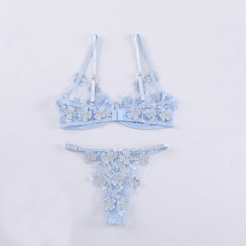 Комплект нижнего белья женский кружевной, прозрачный бюстгальтер с цветочной вышивкой, сетчатый Бралетт, с ажурными чашечками