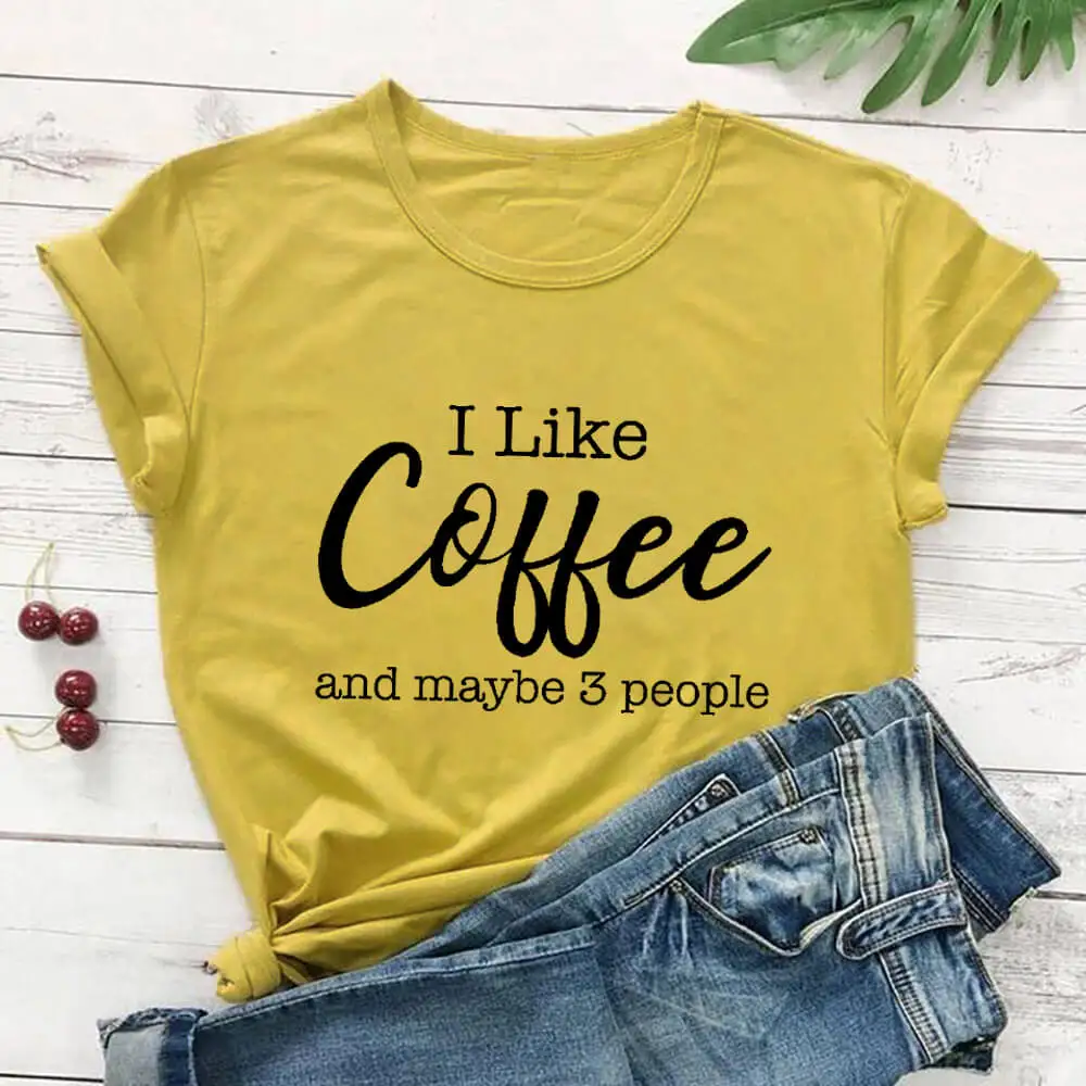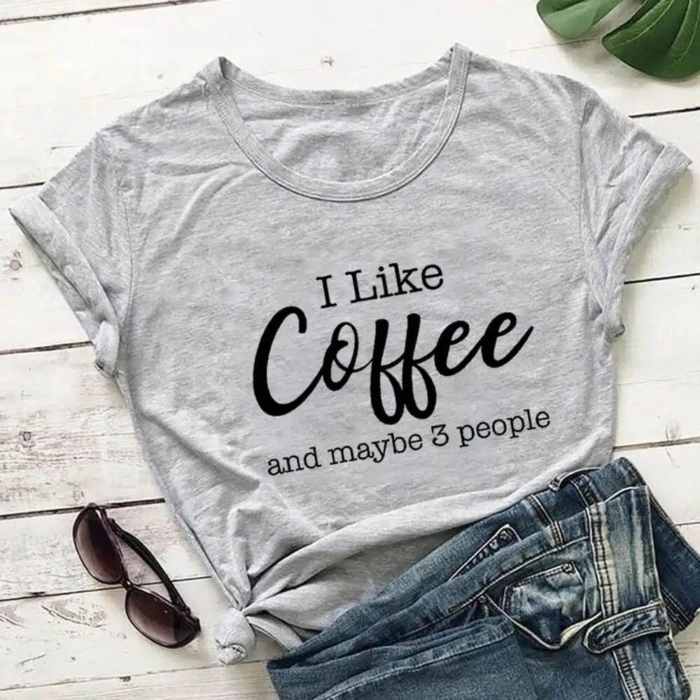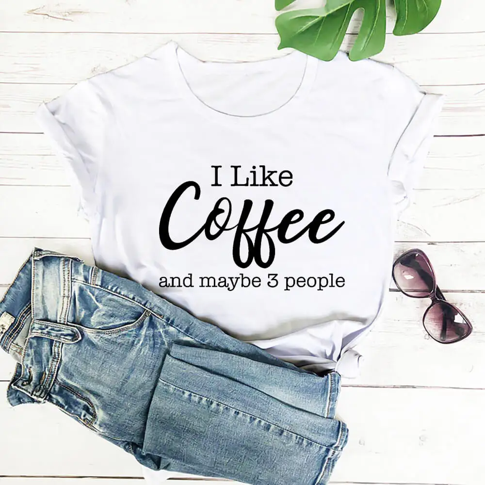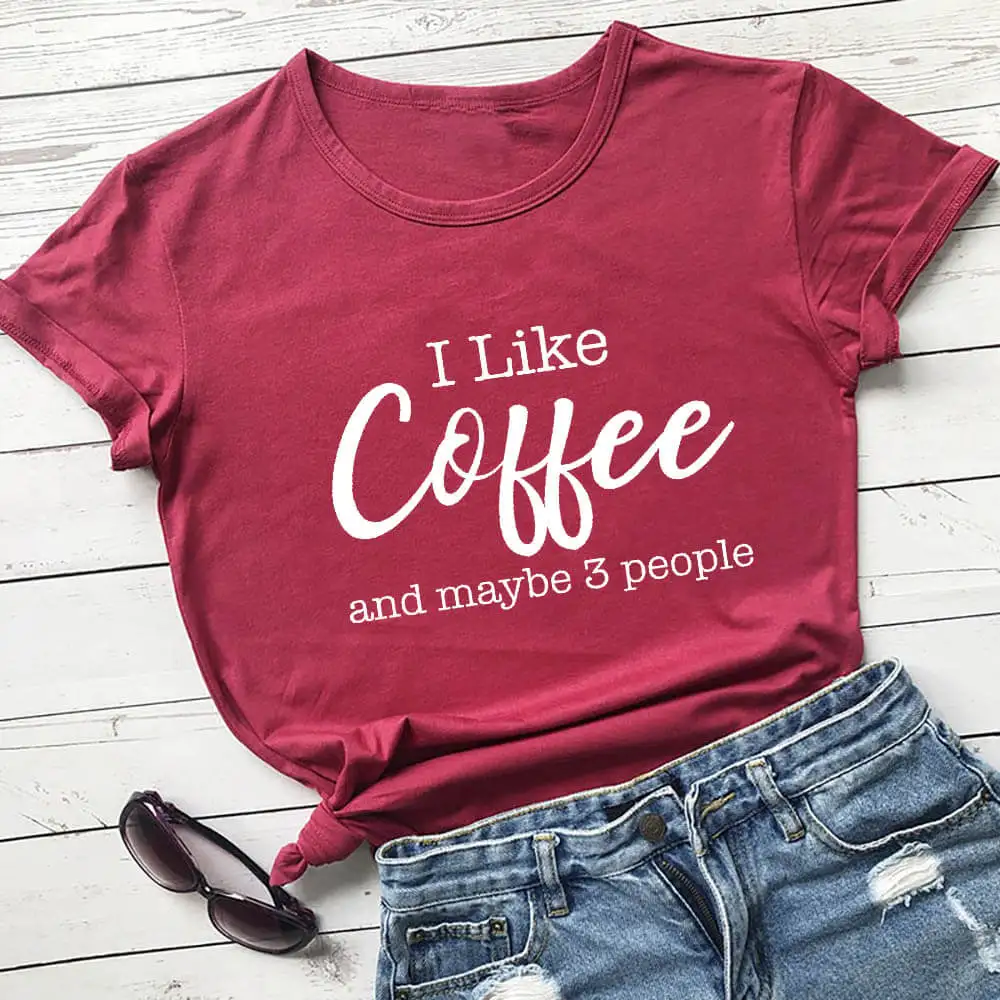 Забавная футболка из 100% хлопка с принтом Я люблю кофе и может быть 3