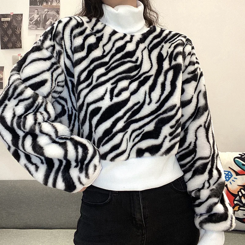 Женский топ-пуловер с воротником, длинный рукав, принт с животными, Пушистый Плюшевый Свободный свитшот