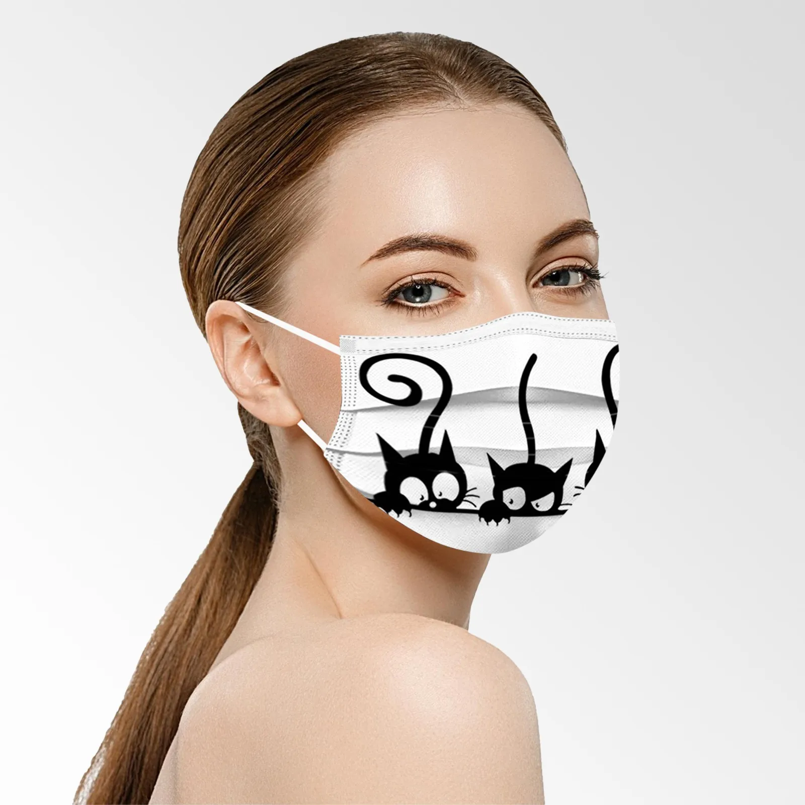 Одноразовая Маска с принтом кошки Для взрослых, 10 шт.