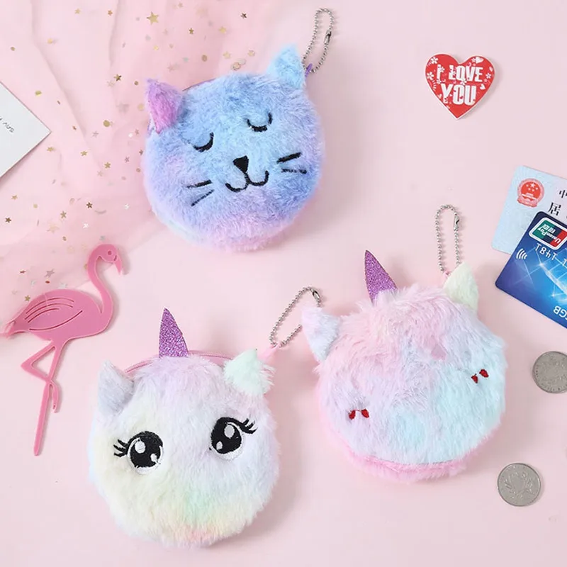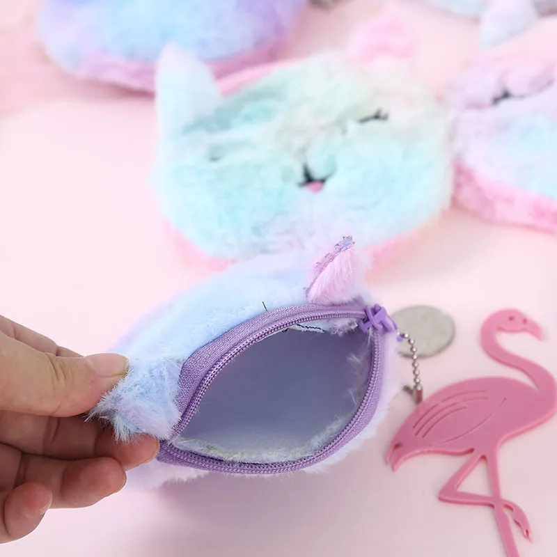 Милый кошелек для монет с единорогом для детей, мягкий меховой мини...