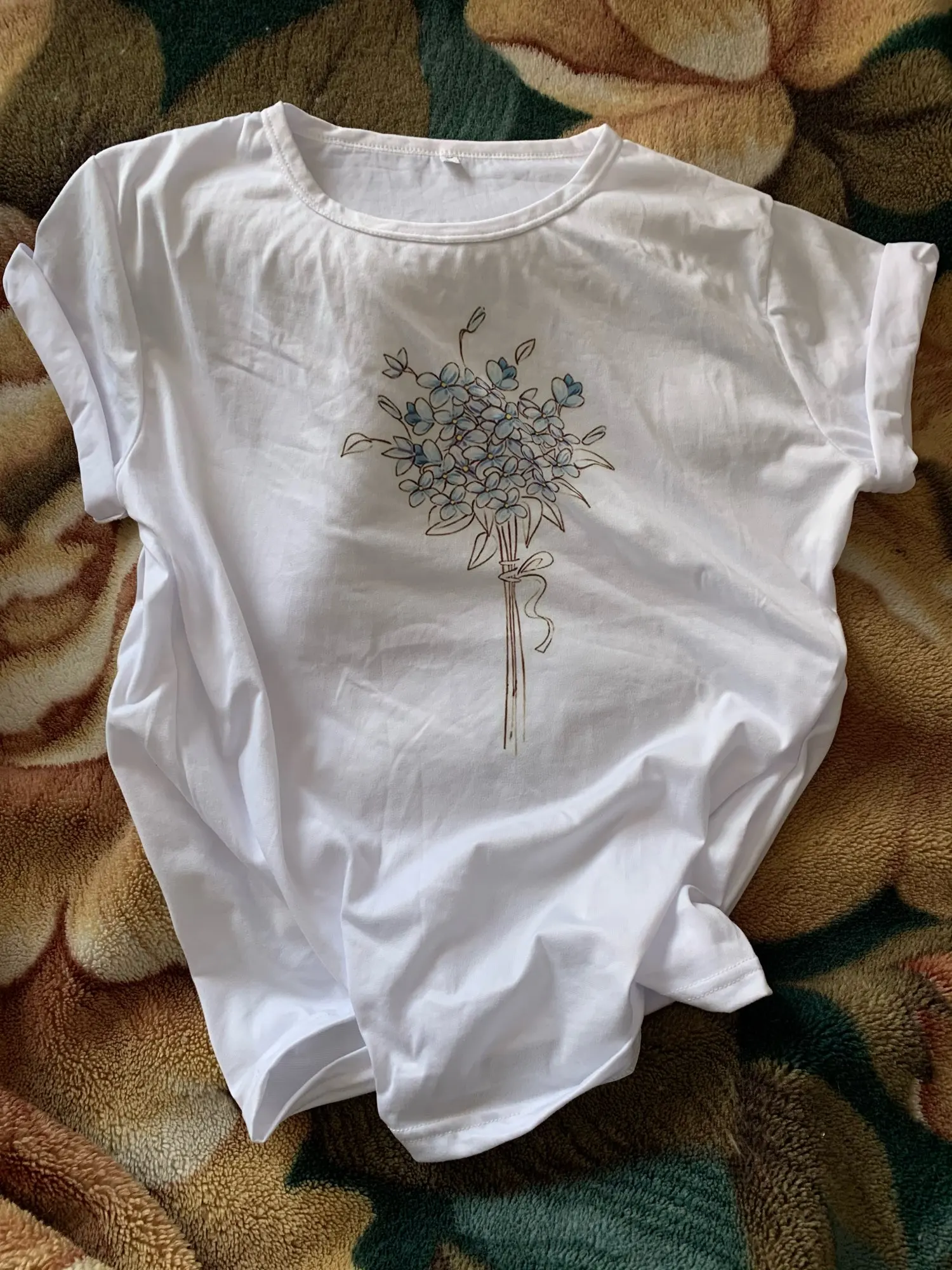 Футболка женская, летняя, с коротким рукавом и цветочным принтом