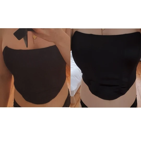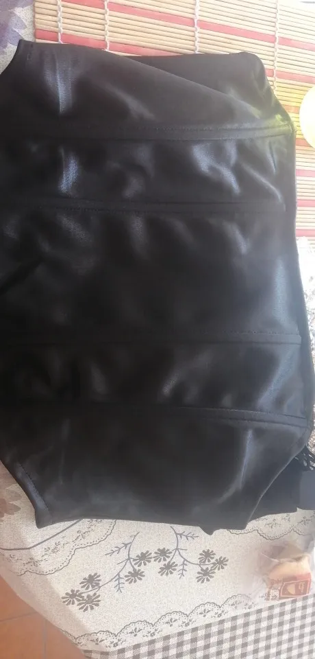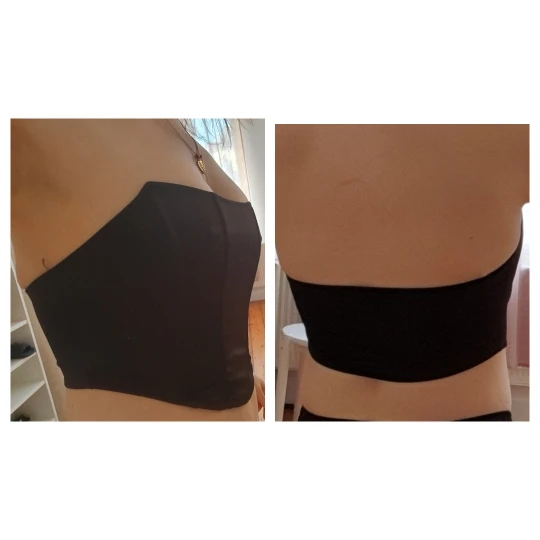 Не верьте в таблицу измерений. Эластичная ткань с твердыми пластиковыми битами для скрепления этого верха. Обхват груди 97 см и обхват талии 77 см, но при больших размерах. Сначала я думал, что он будет слишком мал, если вы прочитаете таблицу измерений. У меня есть ровная комната в груди.