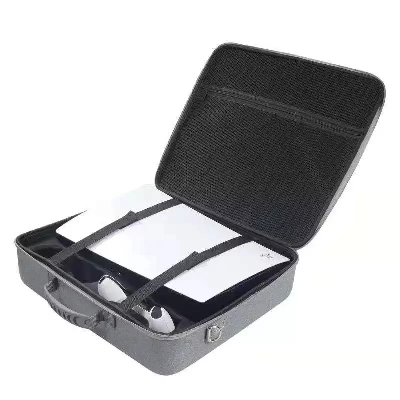 1. Разработано для PS5: специально разработано для PS5. Просторный, можно хранить консоль, шнур питания переменного тока, USB-кабель, наушники или другие аксессуары.2. Жесткий Корпус: Жесткий корпус PS5 изготовлен из водонепроницаемой и ударопрочной нейлоновой ткани, экологически безопасен и прочен. Наполненный внутри, обеспечивает лучшую защиту PS5 от повреждения водой, царапин и столкновений.3. Обновление процесса: ручка обернута высококачественной мягкой кожей, очень удобная, даже если вы носите ее на большие расстояния. Регулируемый плечевой ремень и Расширенная Подушка делают его удобным для переноски через плечо. Вы можете взять с собой любимую игровую консоль.4. Большая вместимость: больше, чем обычные сумочки, с общим размером около 39*45*14 см.5. Комплексная защита: окружен ударопрочной хлопковой тканью и имеет внутри мягкий карман, обеспечивая дополнительную защиту ваших любимых игровых консолей, небольших аксессуаров, контроллеров, кабелей и других аксессуаров. Идеально подходит для путешествий.Спецификация:Материал: ЭВАФункция: Защита от царапин, ударопрочность, полуводонепроницаемость и ПыленепроницаемостьЦвет: серыйПодходит для: PS5Упаковочный лист: