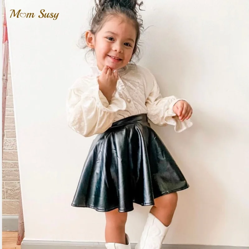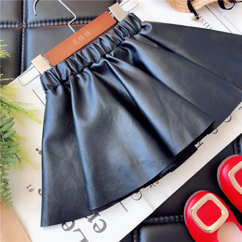 Модная плиссированная юбка из искусственной кожи для маленьких девочек детская юбка из искусственной кожи на весну, осень и зиму короткая одежда для малышей От 2 до 10 лет