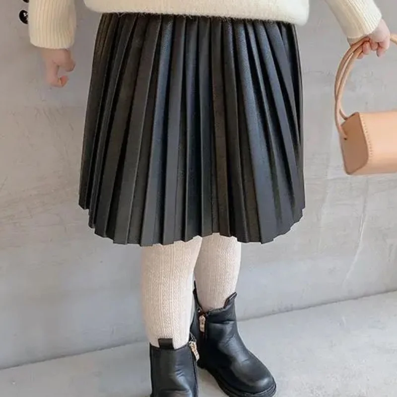 Модная плиссированная юбка из искусственной кожи для маленьких дево...