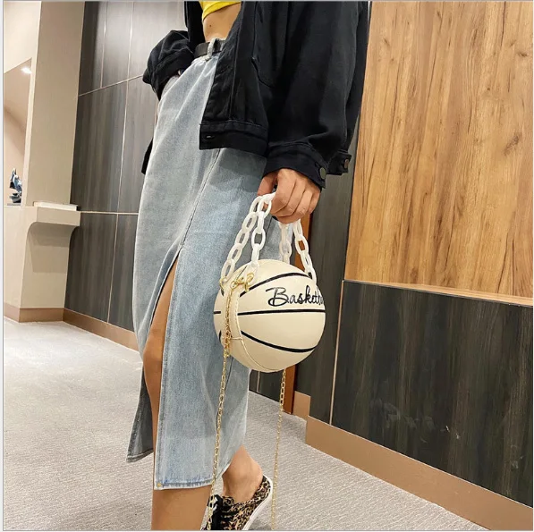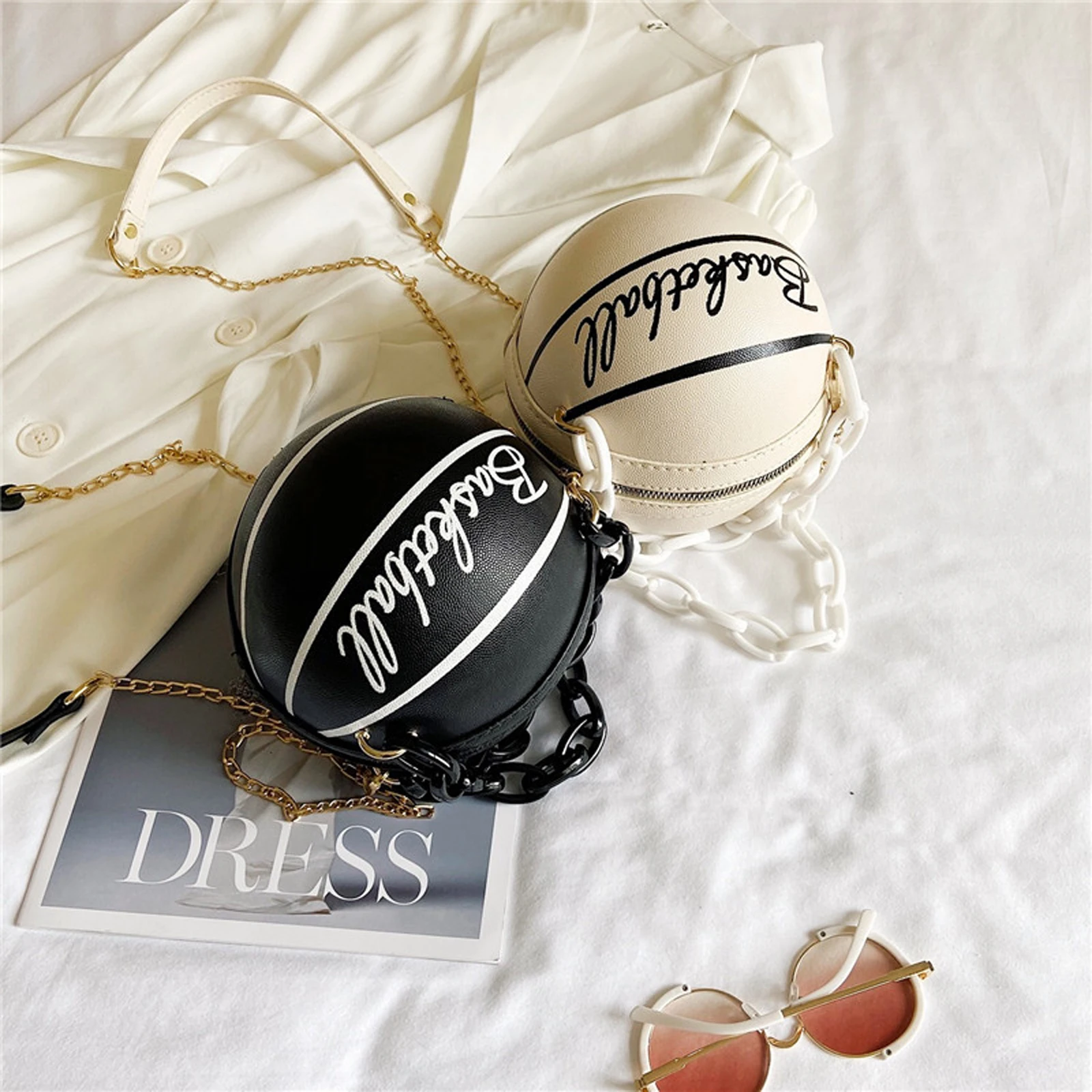 Сумка через плечо в форме баскетбольного футбола, стильная круглая сумка через плечо, сумки с цепочкой и длинным ремешком