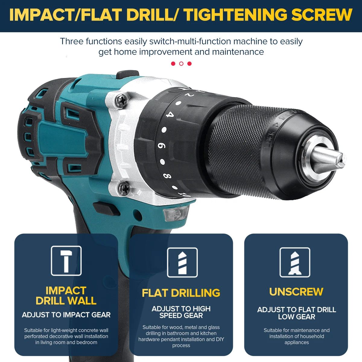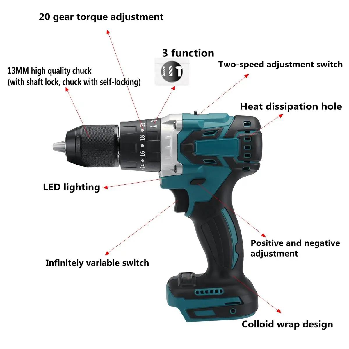 Дрель-шуруповерт ударная 3 в 1, 13 мм, 2 скорости, 18 в