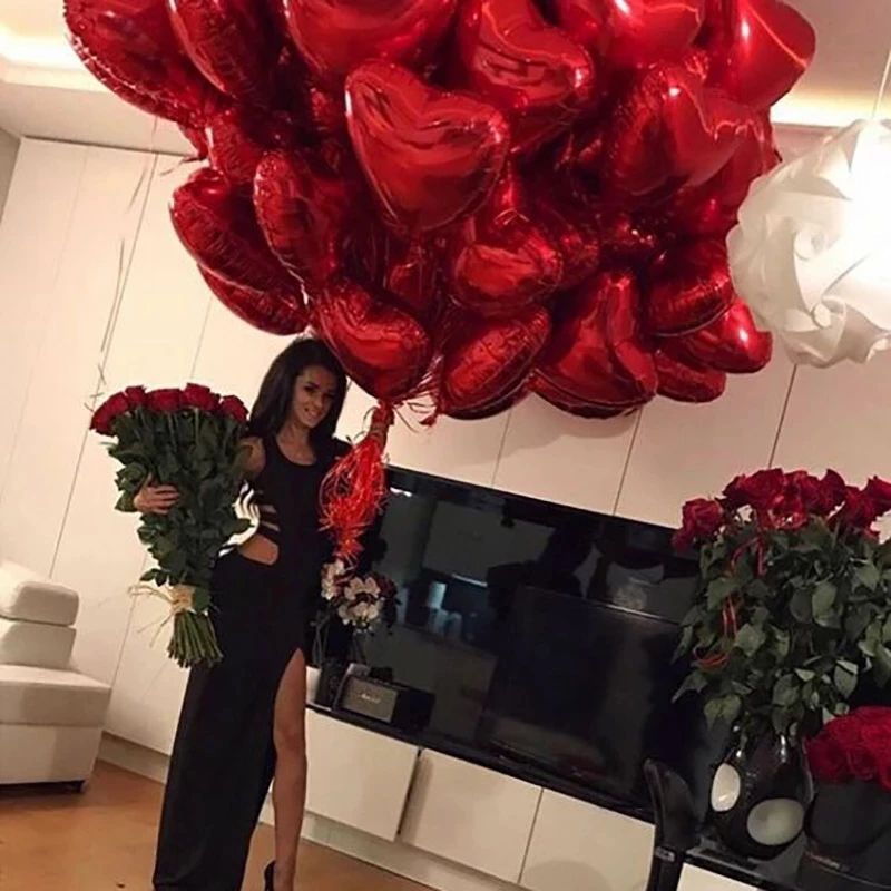 50 100 шт. 18 дюймов красный Фольга формой сердца Воздушные шары брак гелиевый надувной шар металлик одежда для свадьбы, дня рождения декора подарки