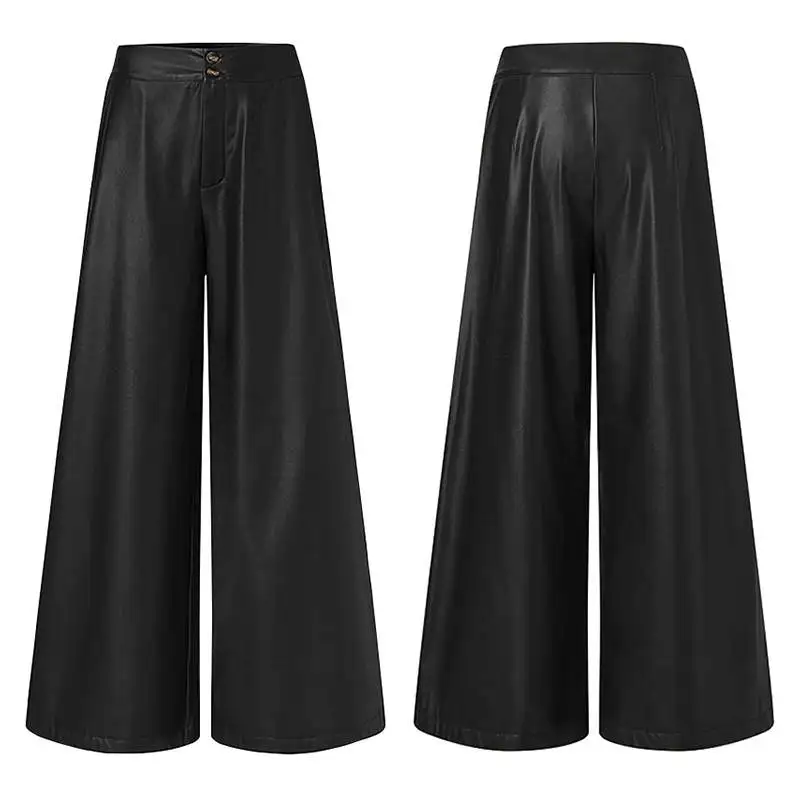 Женские брюки-Палаццо из искусственной кожи, с высокой талией