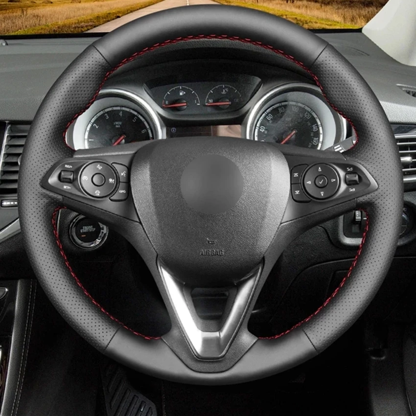 Сшитая вручную черная искусственная кожа Чехол рулевого колеса автомобиля для Opel Astra (K) Corsa (E) Crossland X Grandland X Insignia