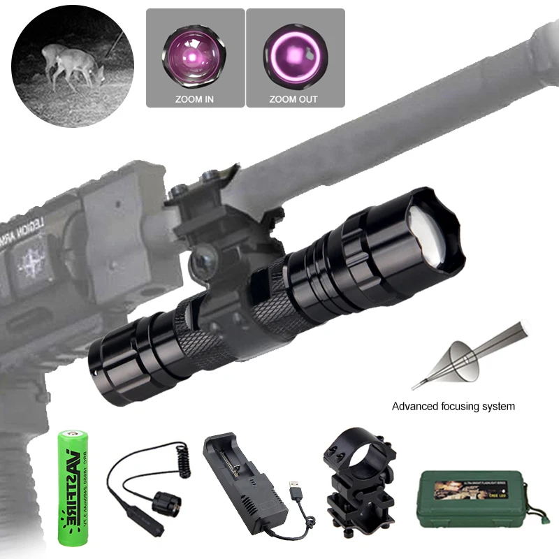 Светодиодный инфракрасный фонарик 940 ярдов, регулируемый охотничий фонарь с фокусировкой, 18650 нм, ИК светильник с ночным видением + + зарядное устройство + крепление + переключатель + коробка