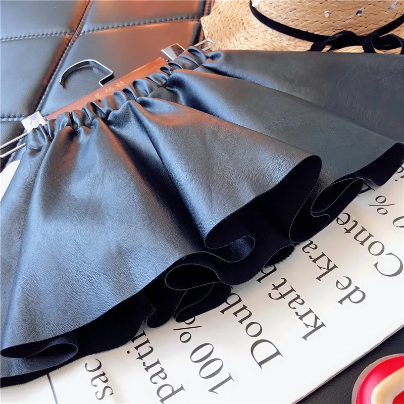 Модная плиссированная юбка из искусственной кожи для маленьких девочек, демисезонная и Зимняя юбка из искусственной кожи для малышей, короткая детская одежда