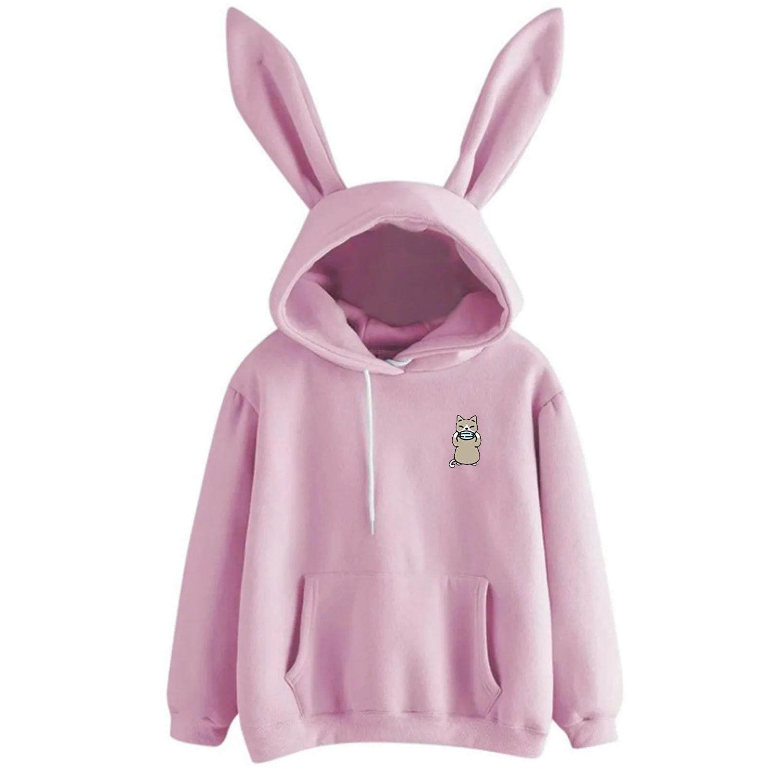Женская толстовка с капюшоном, с длинным рукавом и кроличьими ушками
