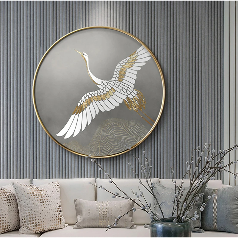 Золотистого или серебристого цвета краснолобый прыгающий кран традиционный настенный китайский арт изображение печати плакатов для комнаты Офис холст Картины Декор