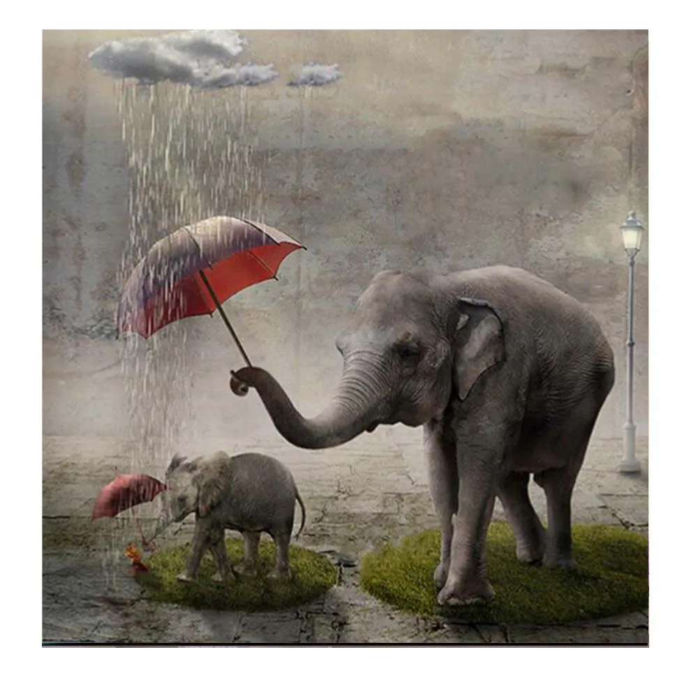 Круглая алмазная живопись 5D сделай сам, вышивка стразами в виде слона, пейзаж, дерево, Набор для вышивки крестиком, украшение для дома