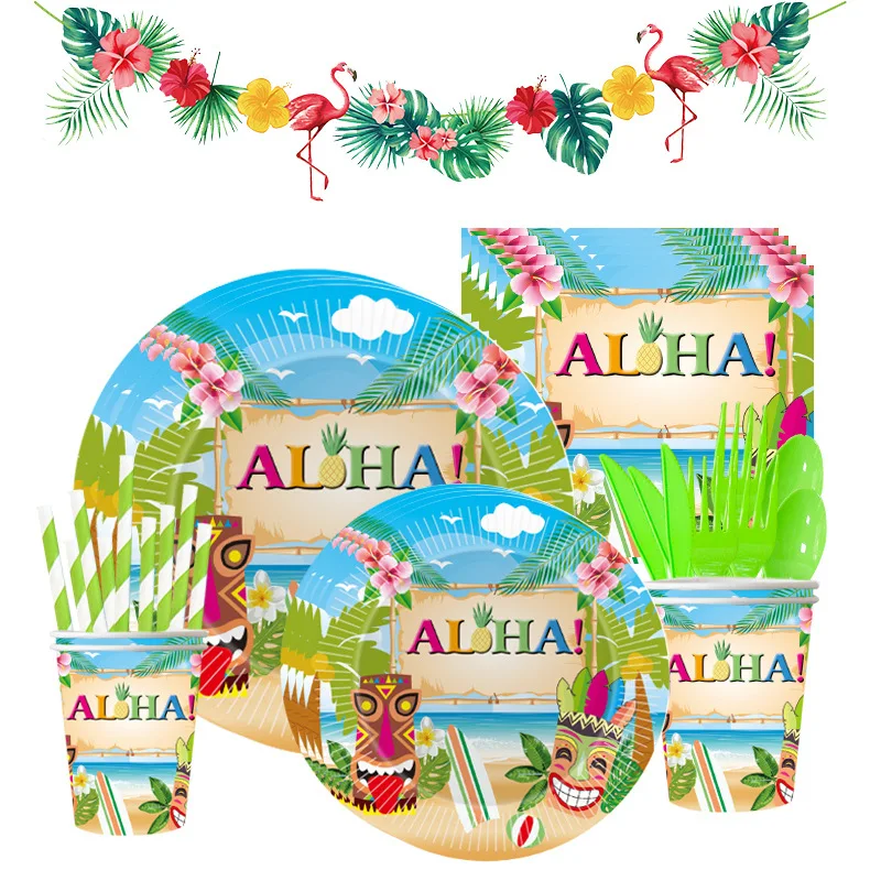 ALOHA Hawaii тема вечерние украшения посуда бумажный стаканчик, тар...