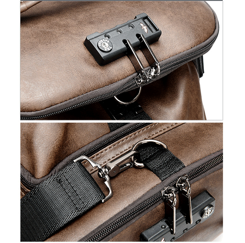 Многофункциональный дорожный рюкзак из искусственной кожи для мужчин, винтажные сумки для ноутбука с Usb-зарядкой для колледжа и школы, с защитой от кражи и кодовым замком