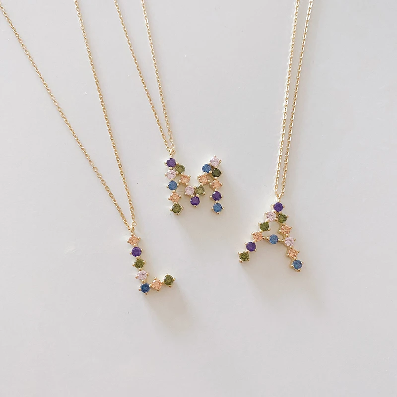 AIDE Мода 26 букв кулон ожерелье для женщин с разноцветными циркон ...
