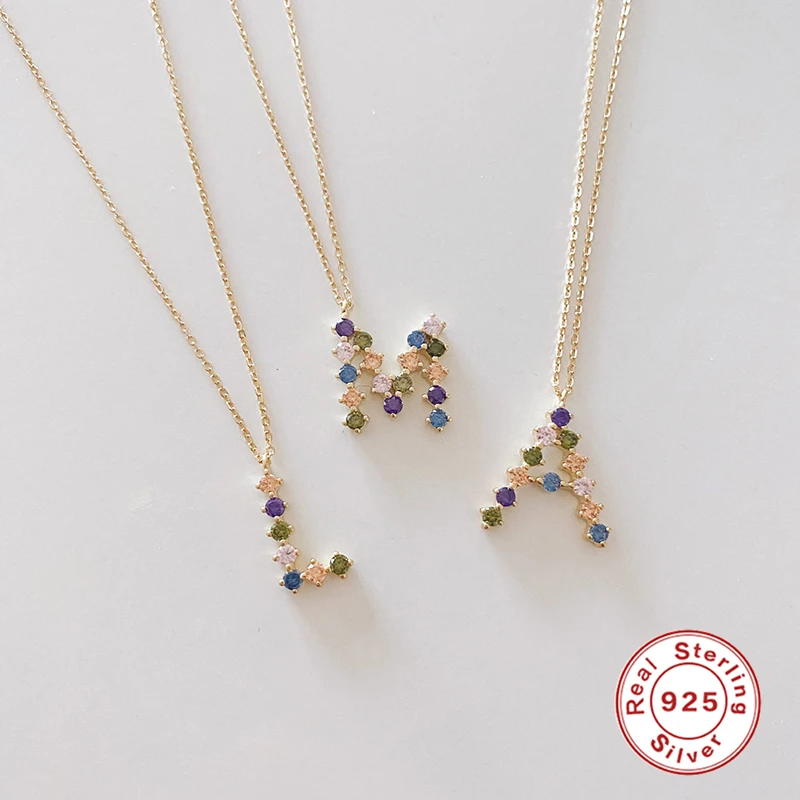 925 стерлингового серебра красочные CZ Начальная буква Подвески A-Z...