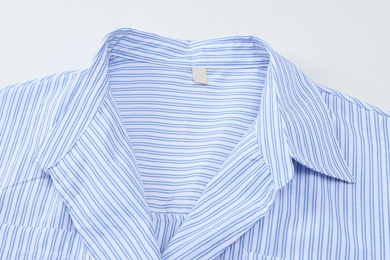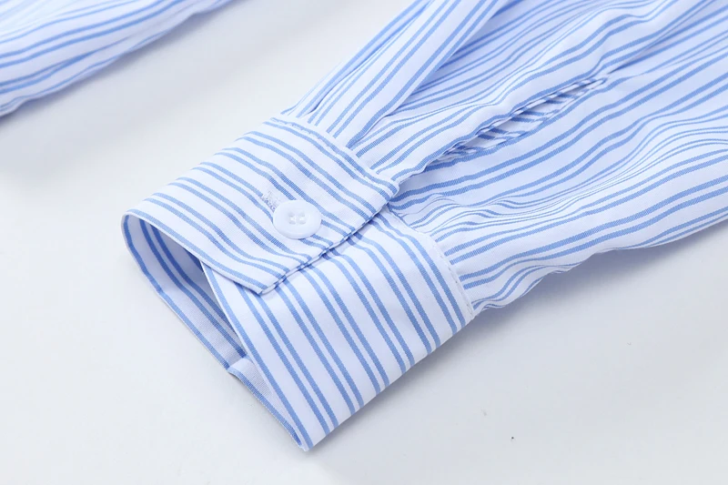 LANMREM 2021 Весна новое поступление полосатая рубашка с отложным воротником в Корейском стиле однобортная синяя свободная рубашка для женщин 2A3214