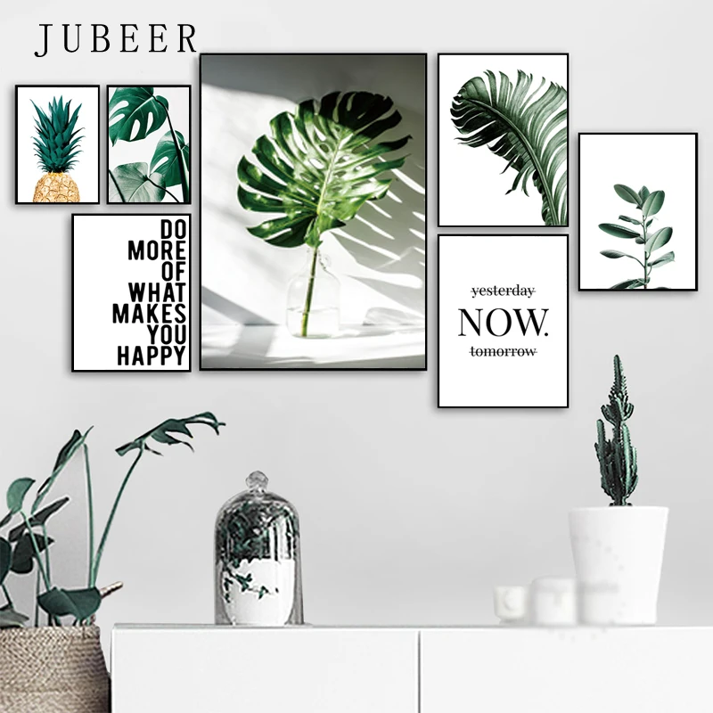 Зеленые листья настенная живопись холст Monstera Пальма банан плака...