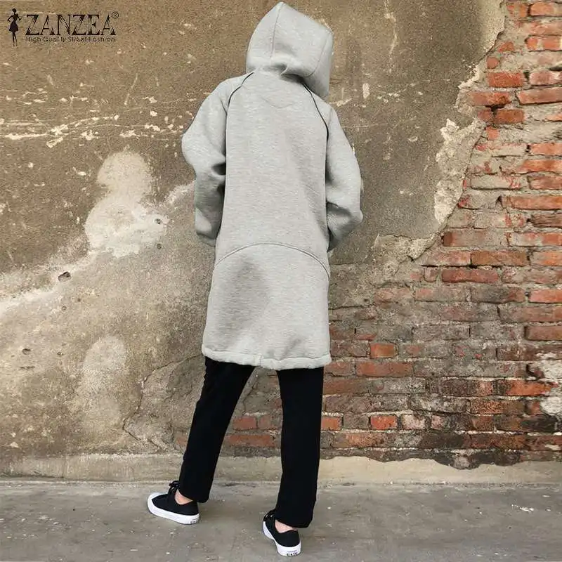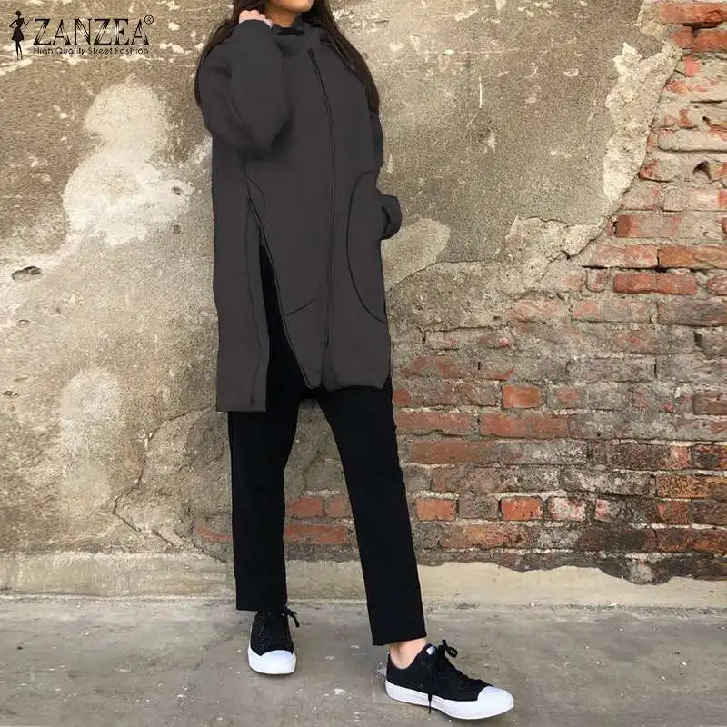 Женская мода 2021, свитшот, пальто ZANZEA, весна-осень, куртки на молнии, Женские однотонные толстовки, верхняя одежда, повседневные Большие размеры
