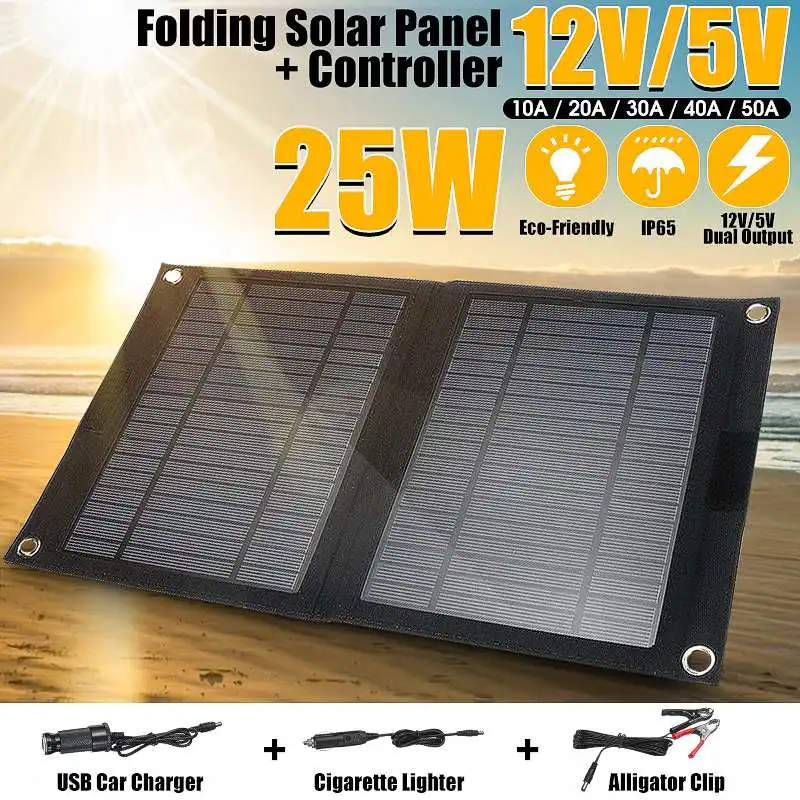Складная солнечная панель 25 Вт 12 В5 В, зарядное устройство с солнечной батареей, USB устройства с двойным выходом, портативная солнечная панель s для смартфонов, кемпинга, пешего туризма