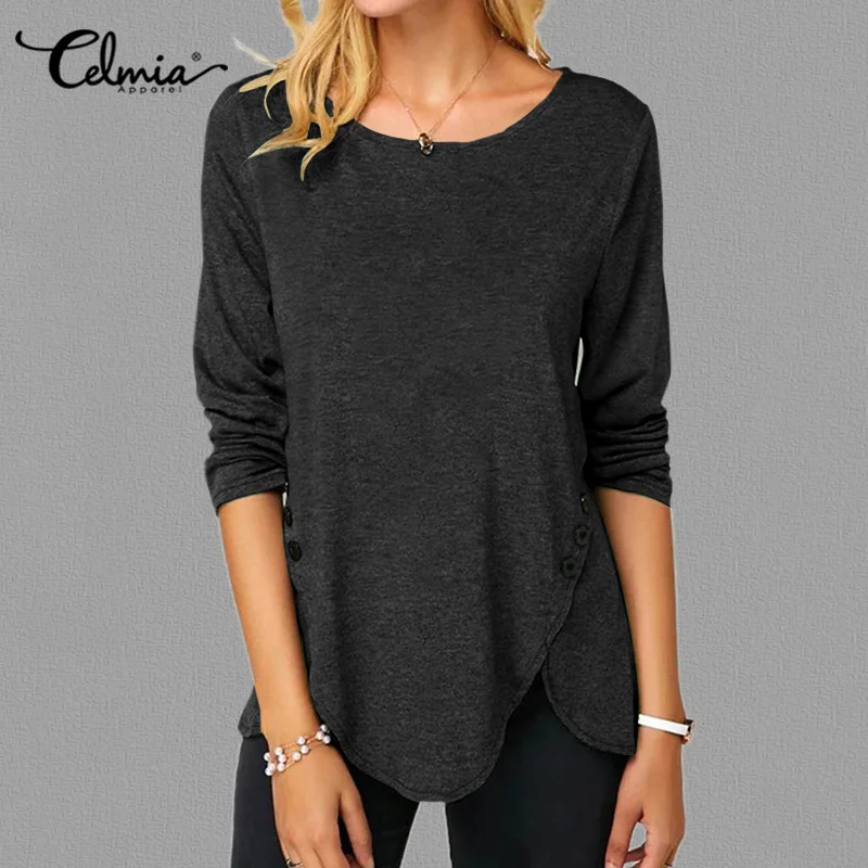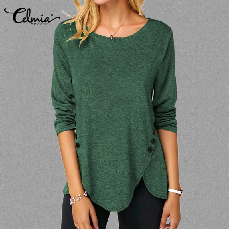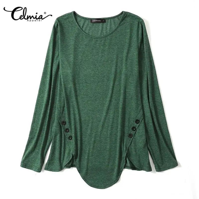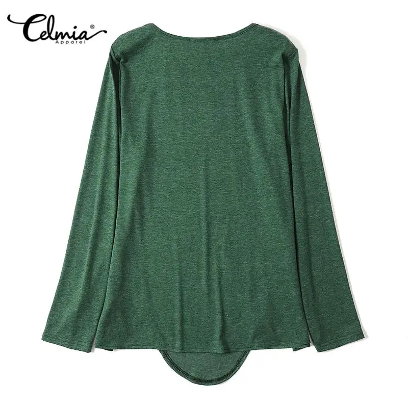 Celmia женские свободные рубашки 2021 Весна с длинным рукавом Вечерние Однотонные блузки на каждый день туника топ пуговицы Асимметричные Винтаж Blusas