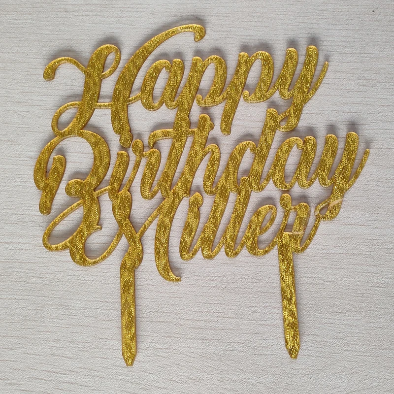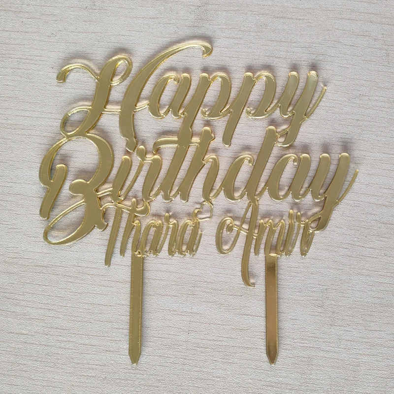 Персонализированный Топпер для торта на день рождения, золотистый, серебристый, синий, розовый, дерево, с днем рождения + ваше имя на день рождения, украшение для торта, Топпер