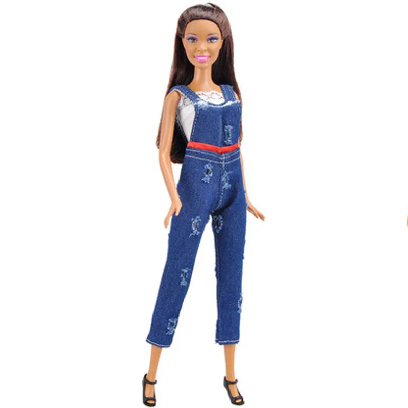 Модные наряды для кукол Барби 1/6 белый кружевной короткий топ и джинсовые штаны Одежда ручной работы на подтяжках для кукольного домика Барби