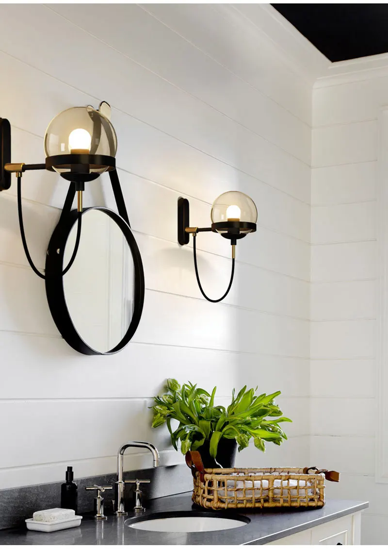 Винтажная настенная лампа в скандинавском стиле, стеклянный светиль...