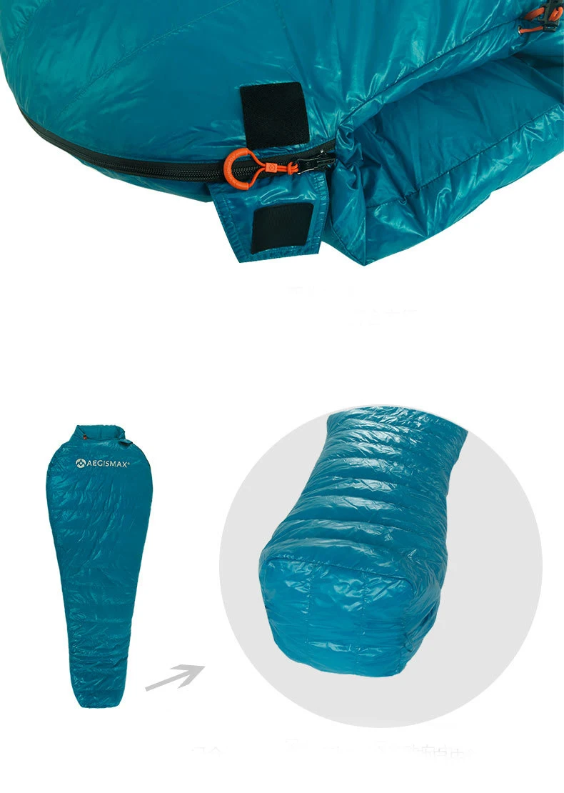 AEGISMAX Ультралайт Мумия Тип 95% белый гусиный пух спальный мешок на открытом воздухе кемпинга Пеший Туризм полностью подкладка Структура Splicable спальный