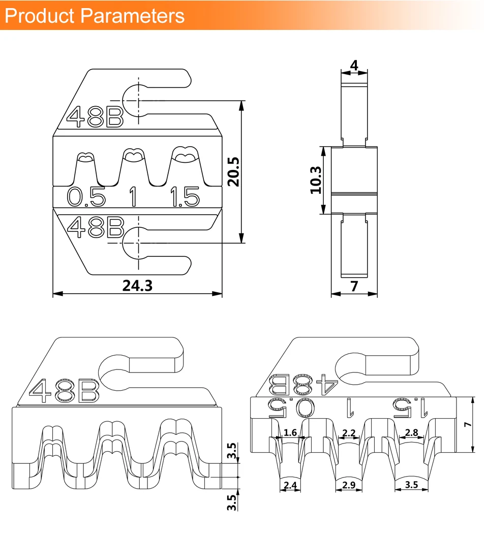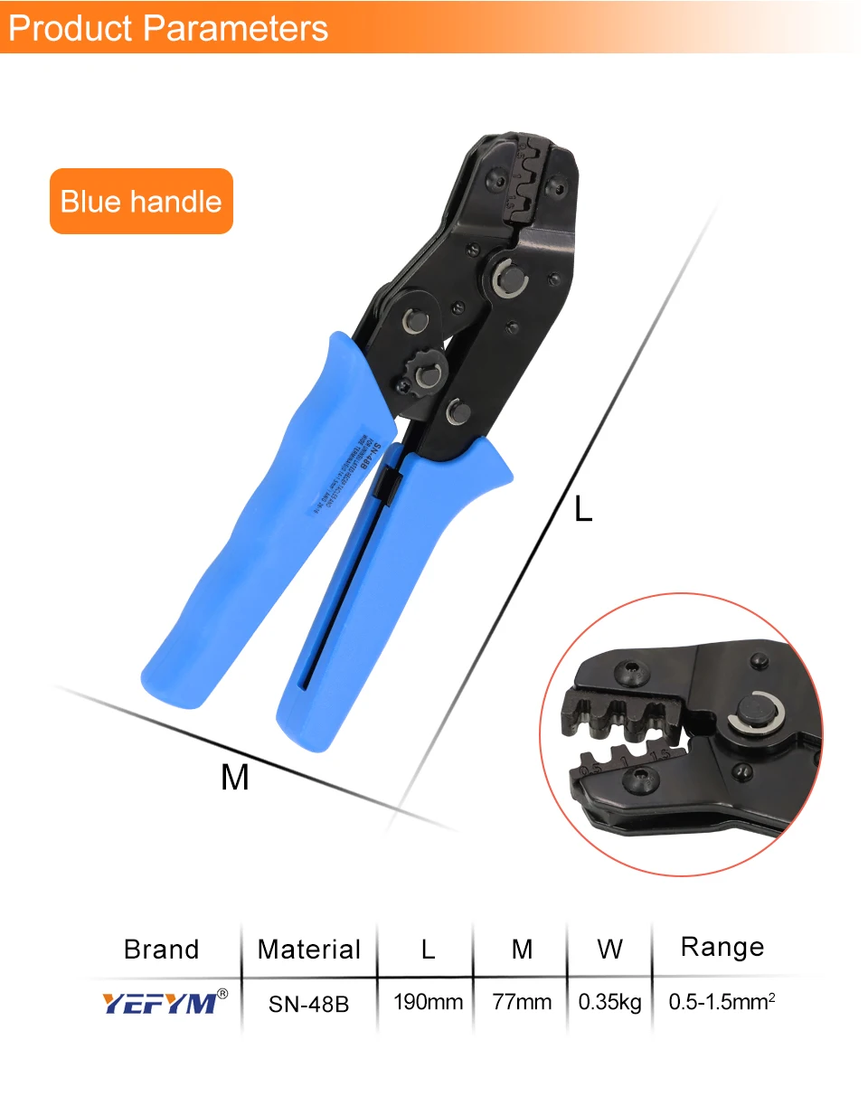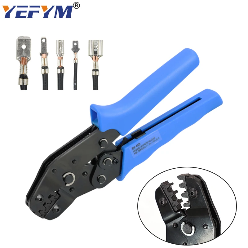 Клещи обжимные YEFYM SN-48B, 0,5-1, 5 мм2, высокоточные, с язычком, 2,8, 4,8, 6,3, автомобильные клеммы наборов проводных электрических ручных инструментов