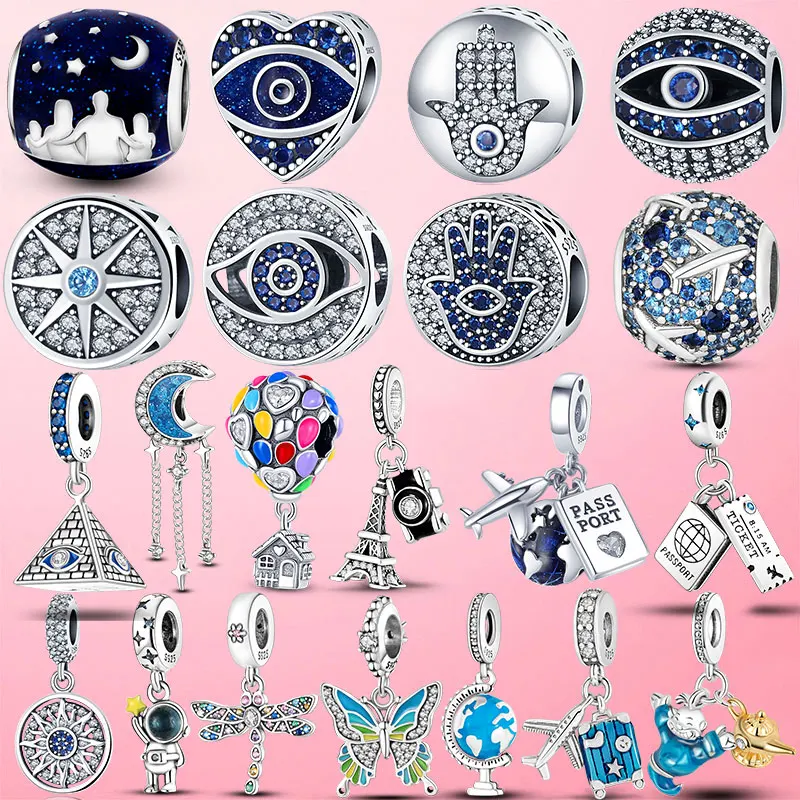 Женский браслет из серебра 925 пробы с подвеской в виде астронавта и галактики