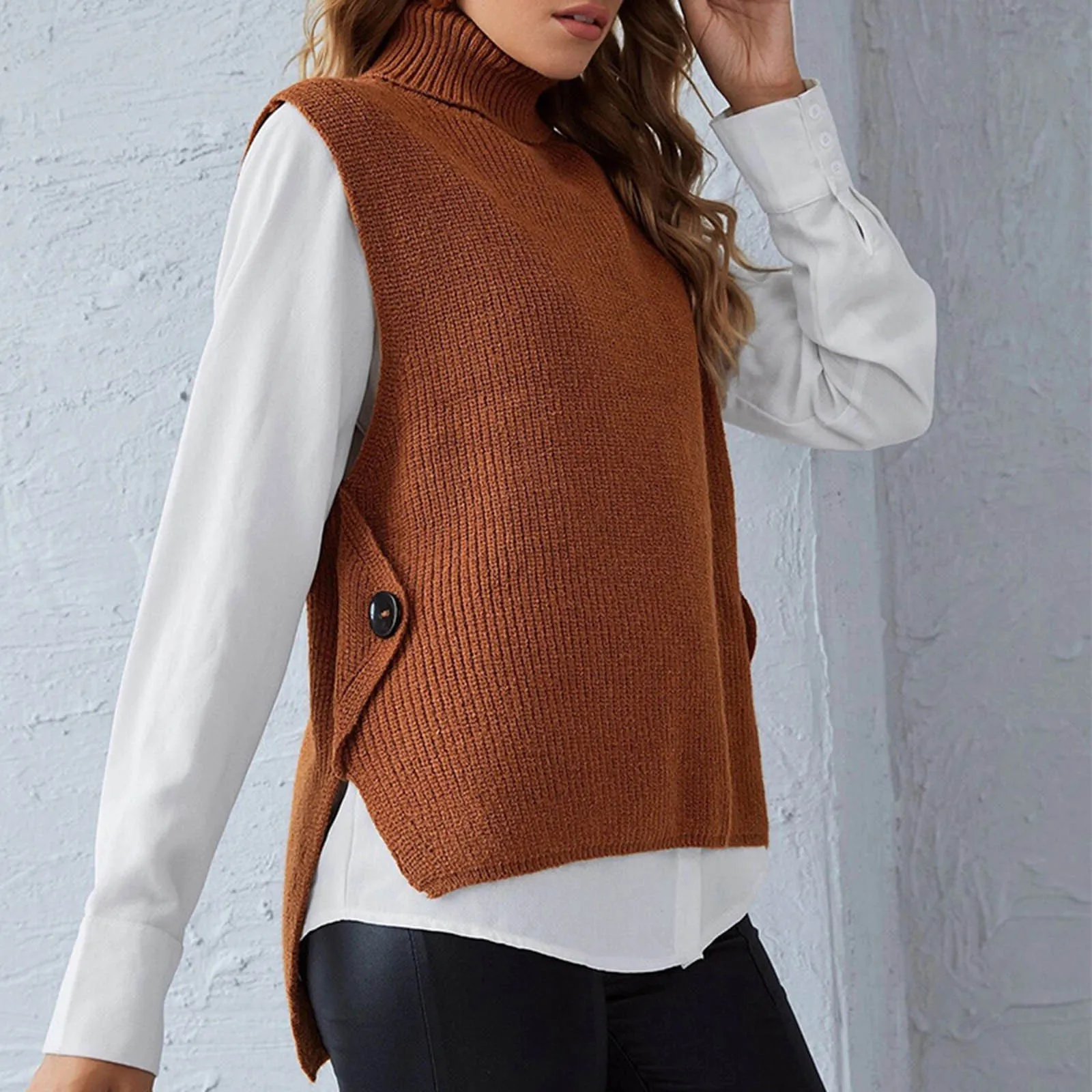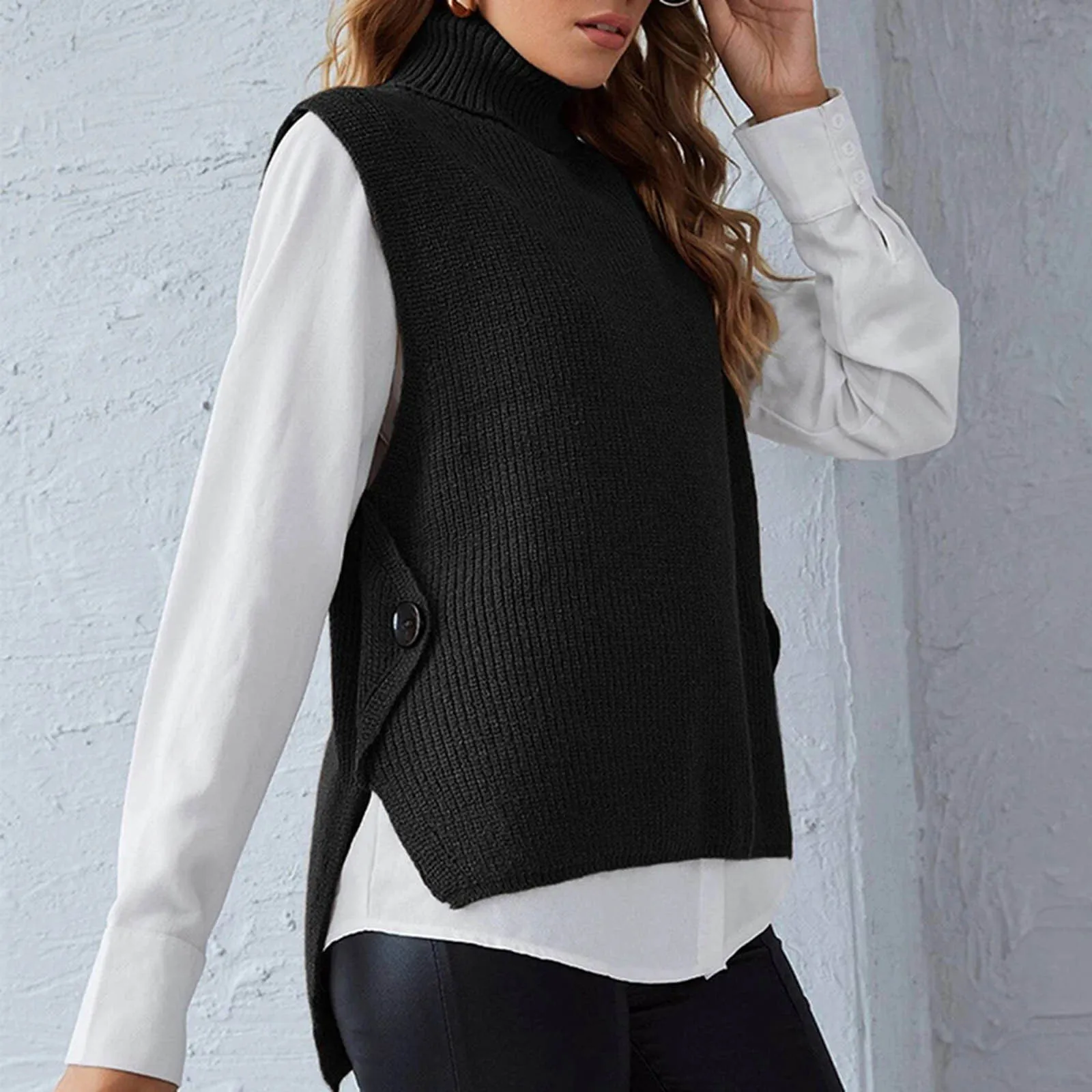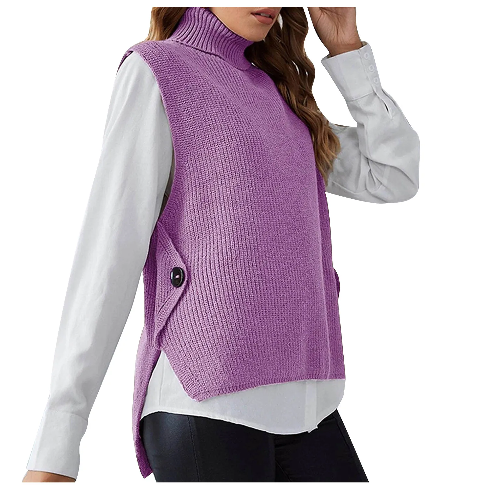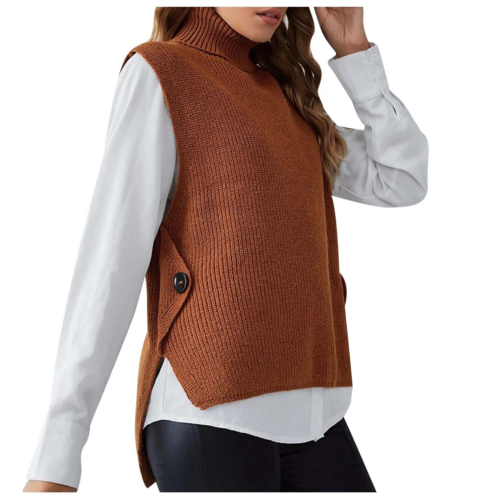 Осенне-зимний свитер без рукавов с высоким воротником, женский модный Асимметричный жилет, повседневный свободный трикотажный топ # T2G