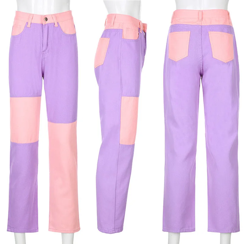 2021 модные женские джинсы в стиле пэчворк с цветными блокировками ...