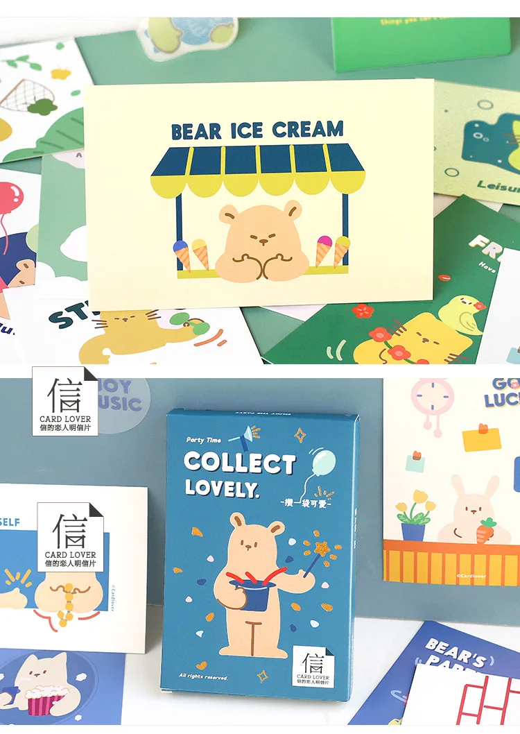 Yisuremia 30 шт.упак. милый кролик медведь кавайная поздравительная открытка День рождения сообщение Письмо Конверт Подарочная открытка набор канцелярских принадлежностей