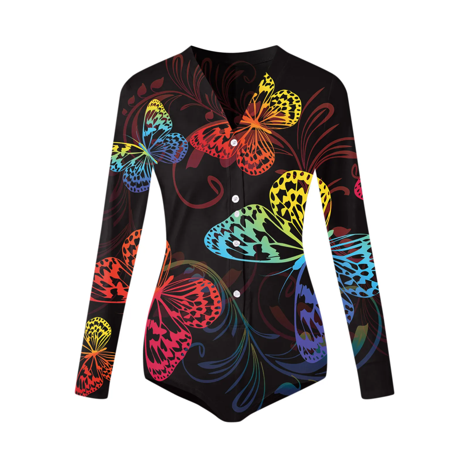 Одежда для сна, комбинезон для малышей, боди, костюм для подвижных игр, Для женщин с длинными рукавами с принтом в виде пуговицы Harajuku Для женщин Пижама-комбинезон Mujer комбинезоны