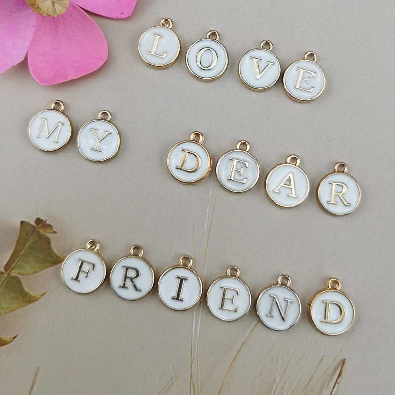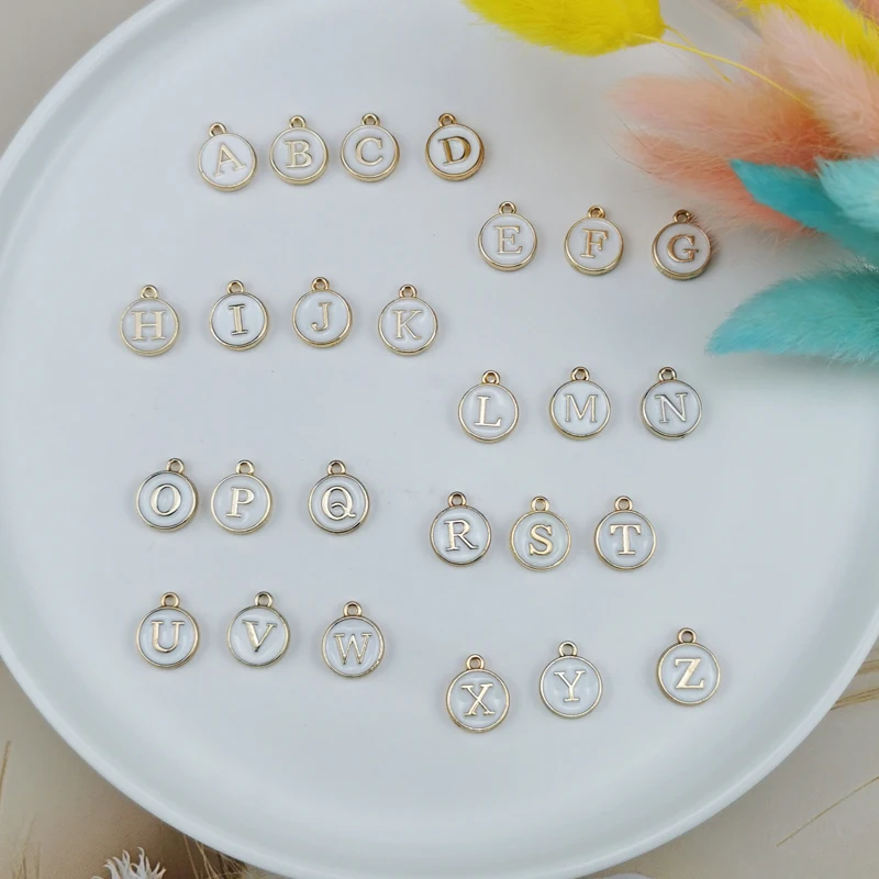 10 шт 26 Алфавит двойное лицо эмаль амулеты золотой цвет подвески-буквы Fit брелок для изготовления украшений вручную 12*14 мм