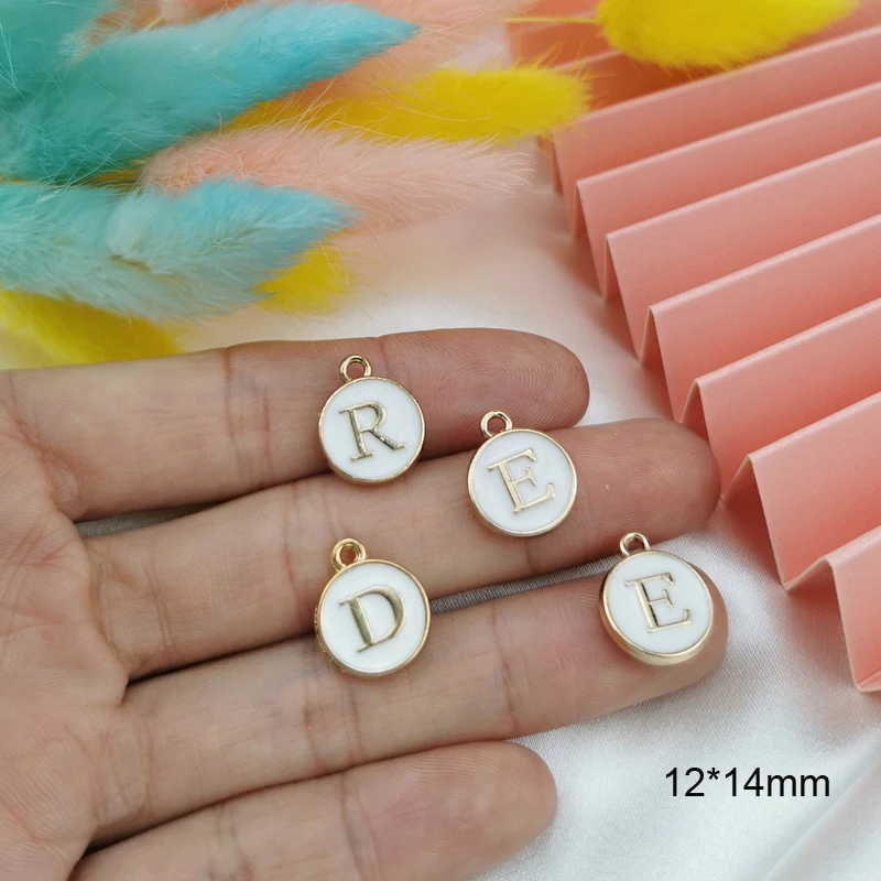 10 шт. 26 букв алфавита двойной уход за кожей лица Эмаль Подвески золото Цвет подвески-буквы подходит брелок для изготовления украшений вручную 12*14 мм