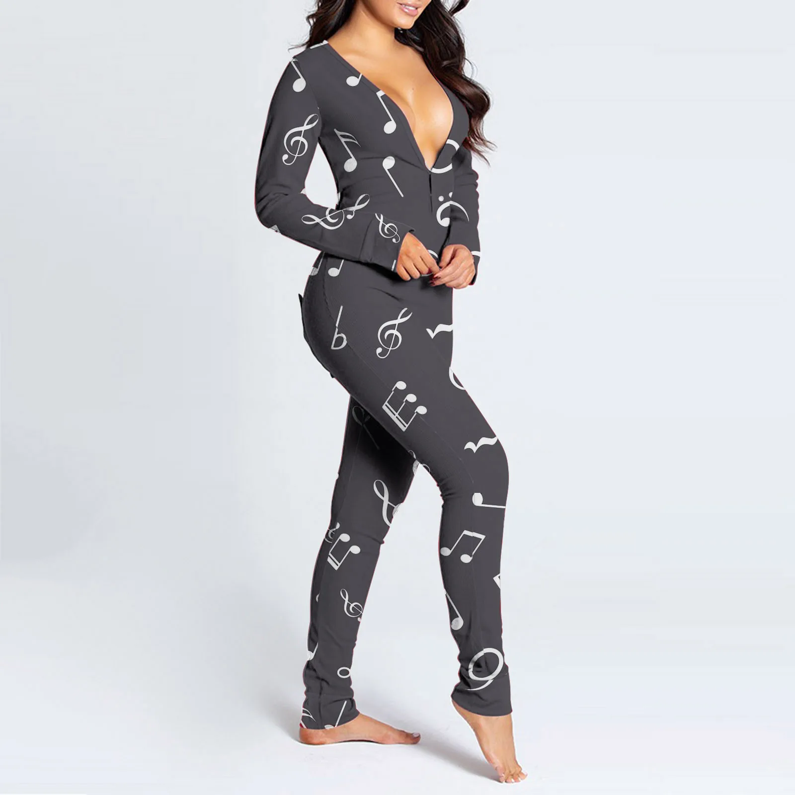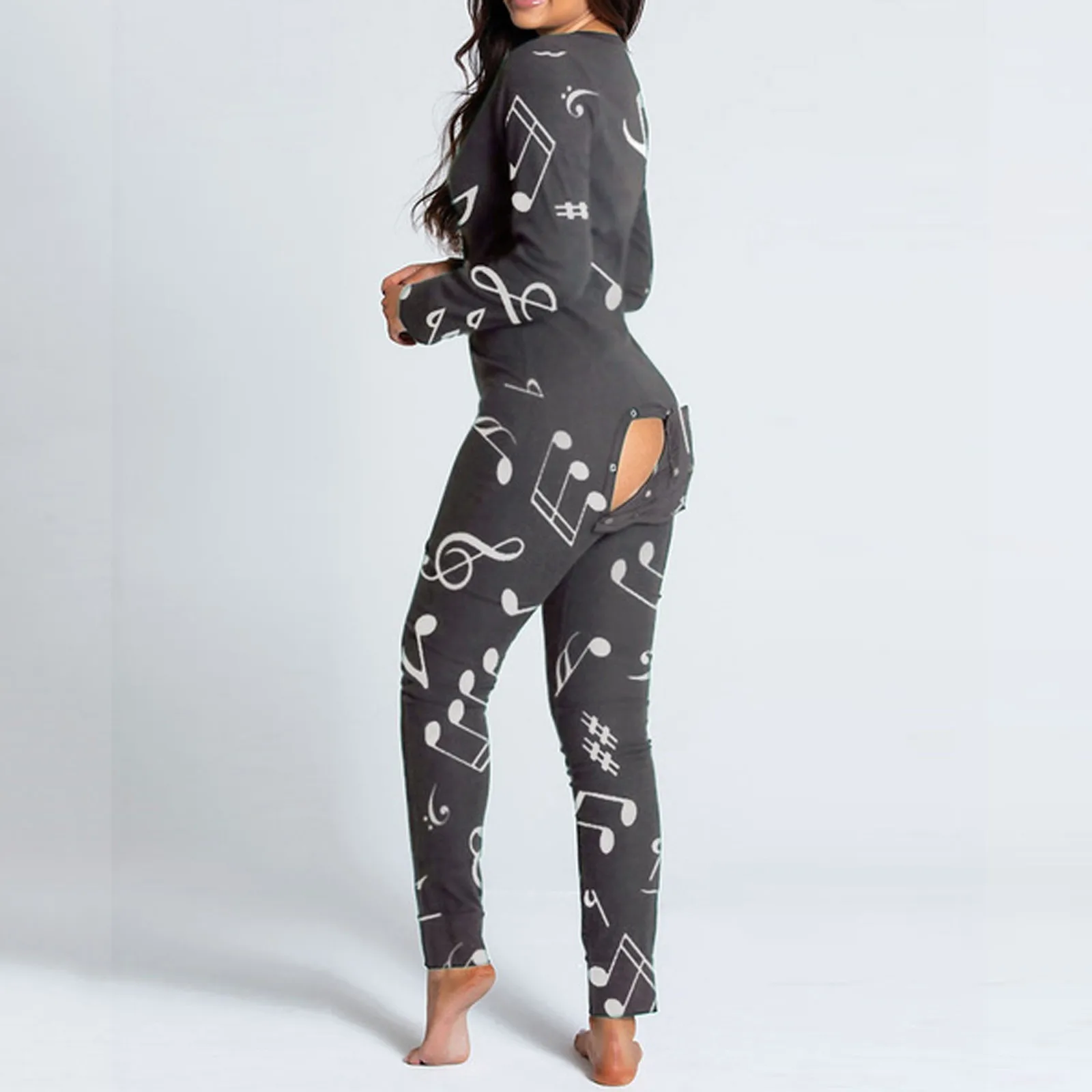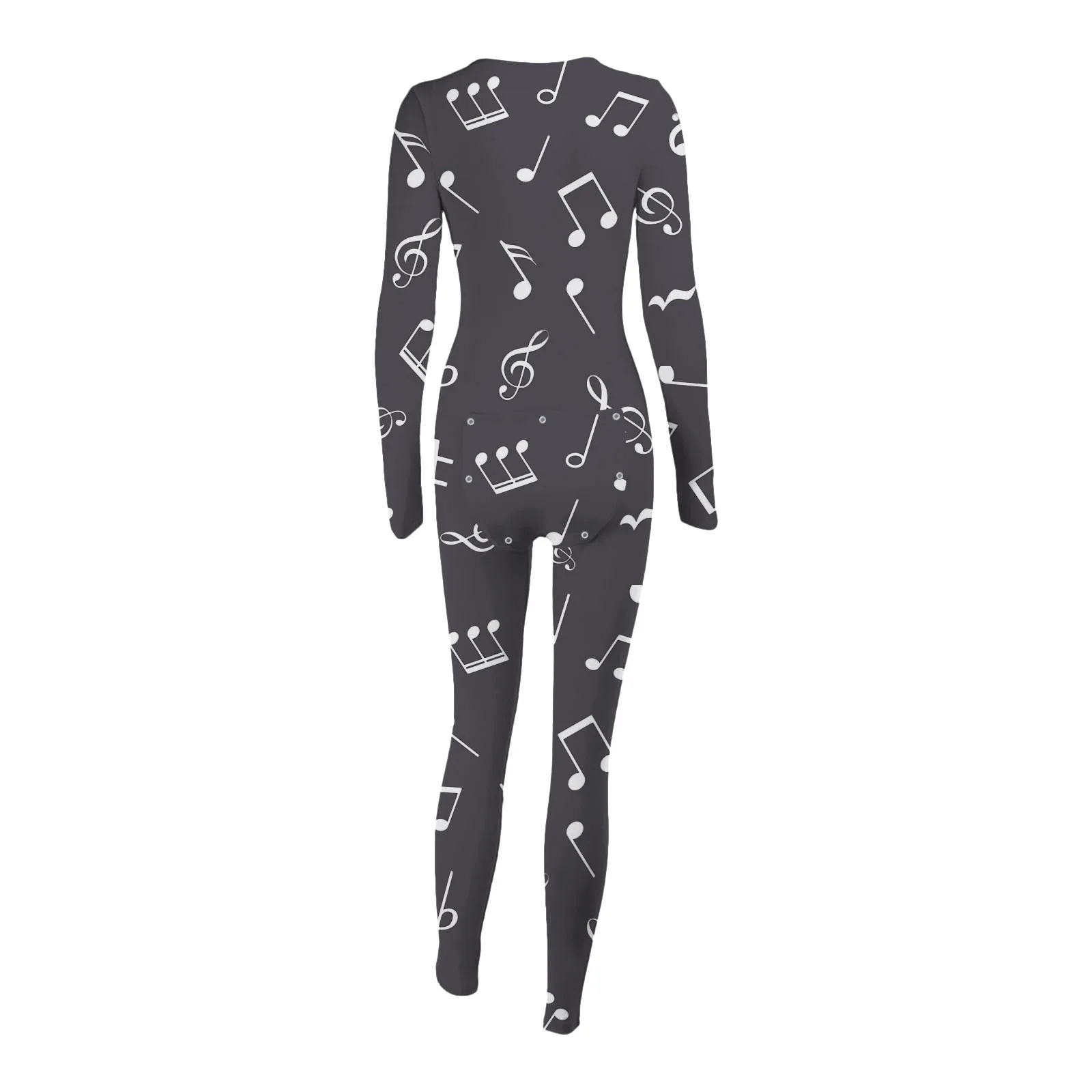Женский комбинезон с принтом музыкальных нот, пуговицы для пижамы, Облегающий комбинезон, одежда для сна, на пуговицах, с клапаном, одежда для сна, Combinaison Femme