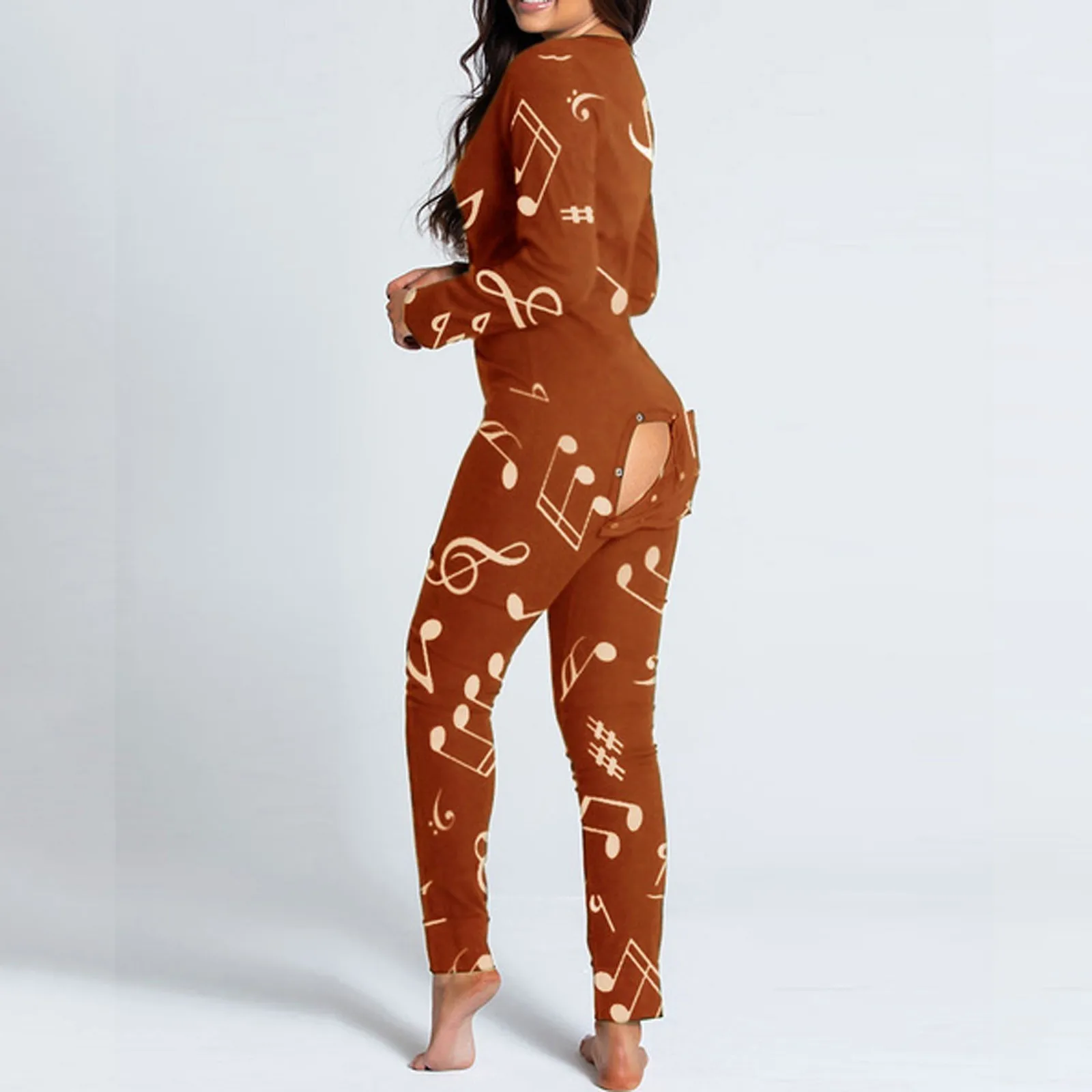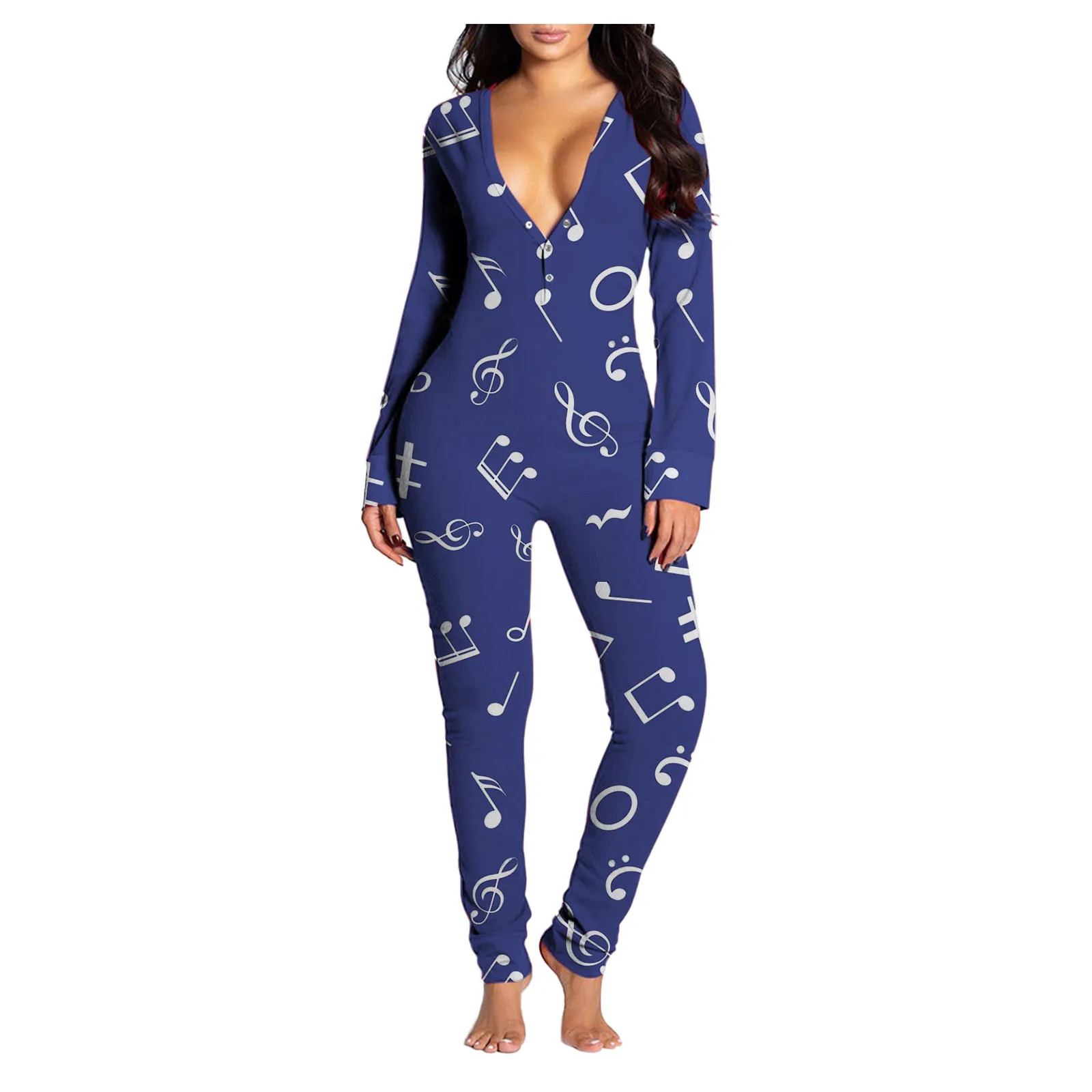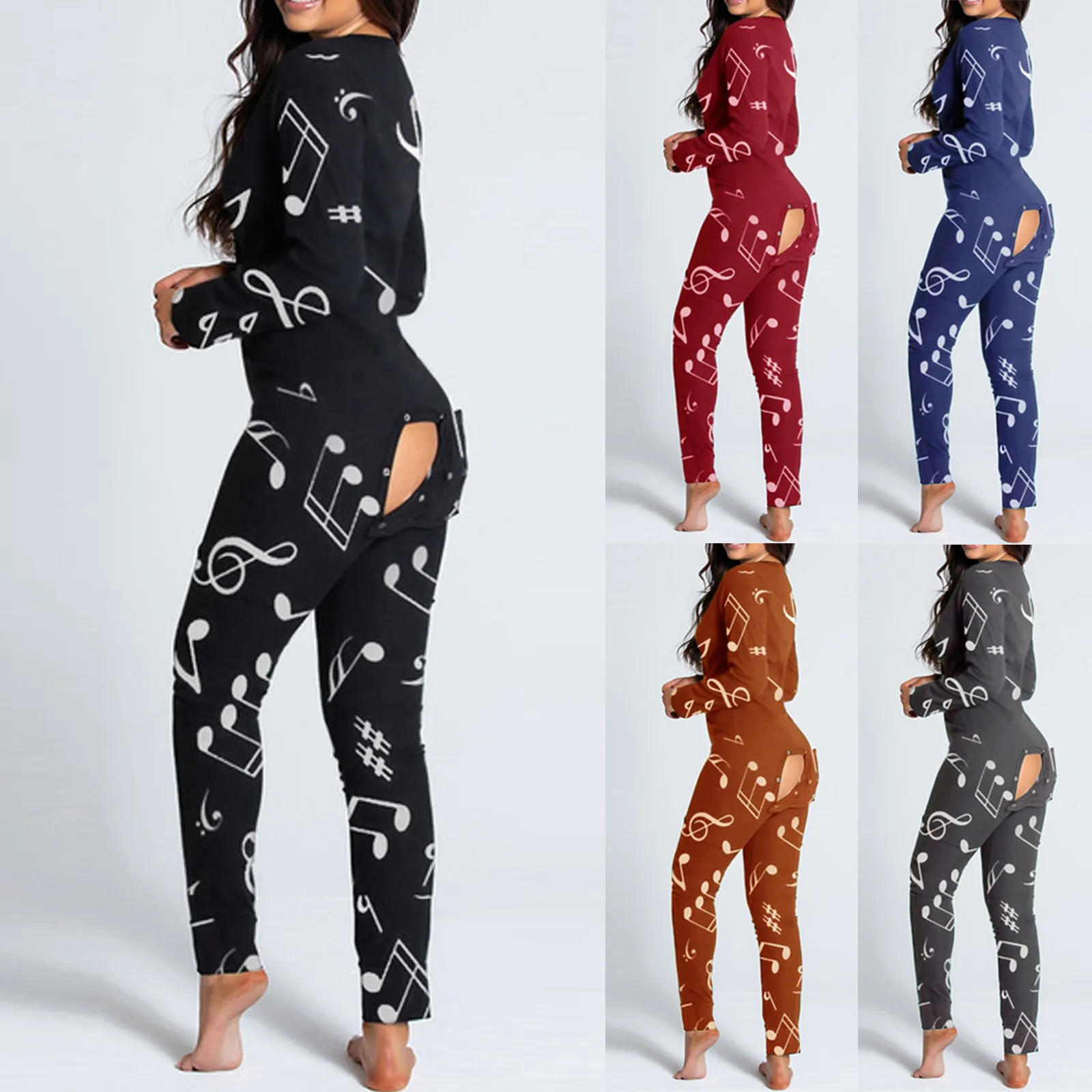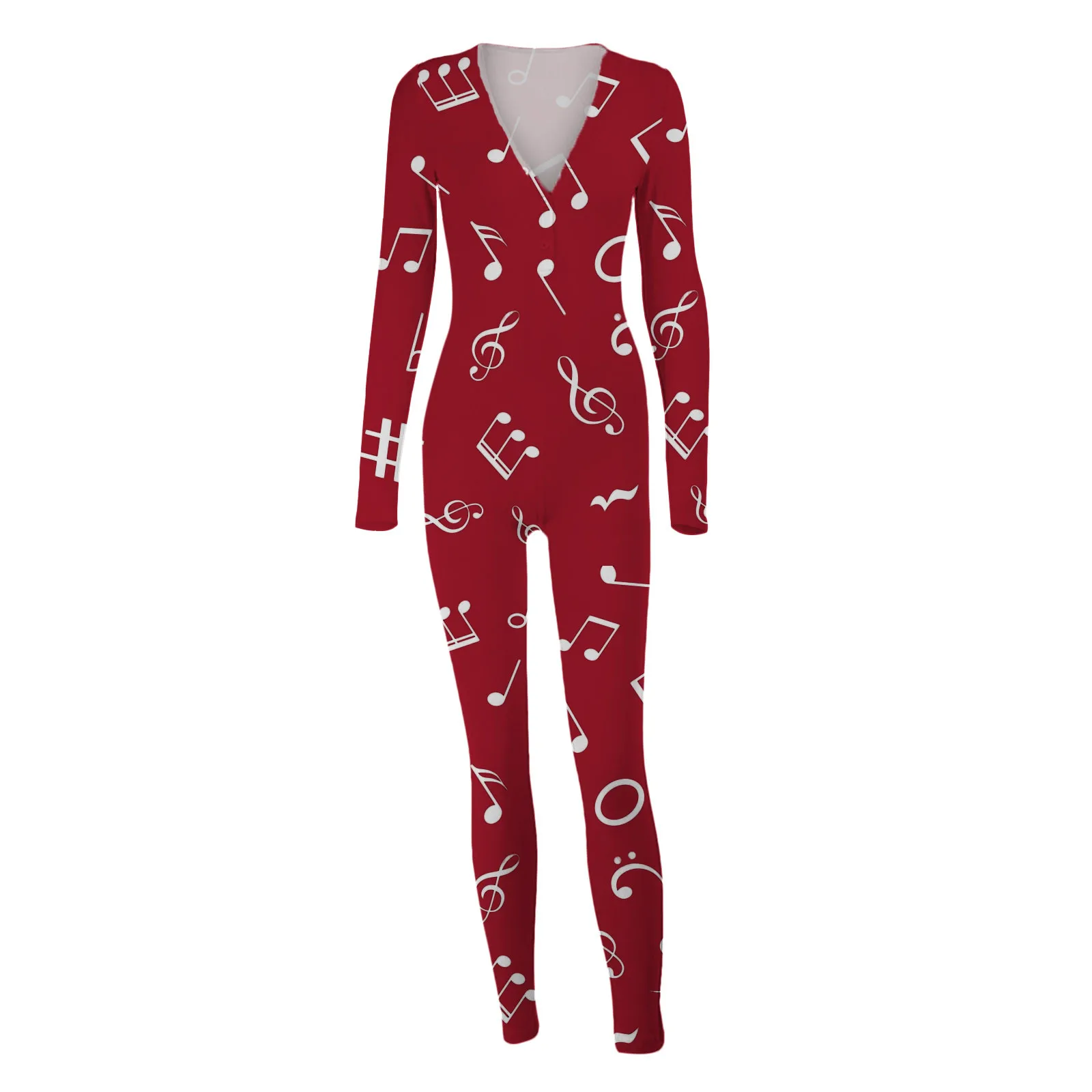 Женский комбинезон с принтом музыкальных нот, пуговицы для пижамы, Облегающий комбинезон, одежда для сна, на пуговицах, с клапаном, одежда для сна, Combinaison Femme