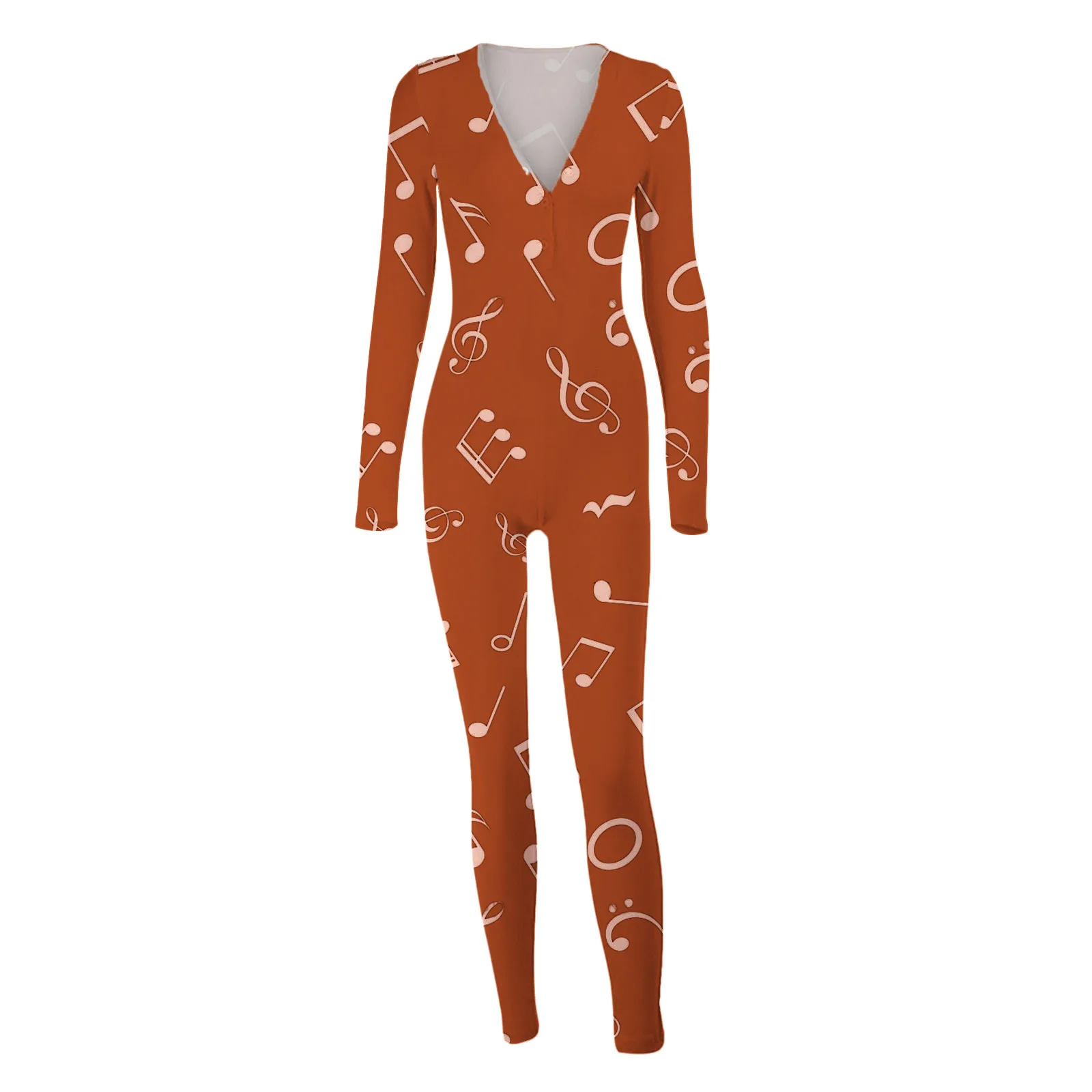 Комбинезон женский с принтом музыкальных нот, пуговицы для пижамы, пуховик, Облегающий комбинезон, ночная рубашка, пижама на пуговицах с клапаном