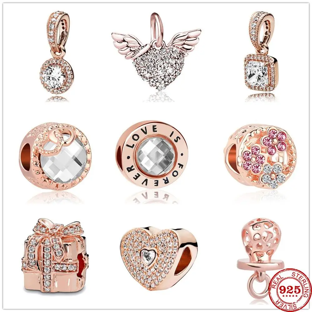 Новый летающий сердце любовь навсегда белыми фианитами розовая бусина Шарм, соответственные Европейской Пандоре обаятельные Серебро 925 оригинальный браслет из бусин, сделай сам, ювелирное изделие